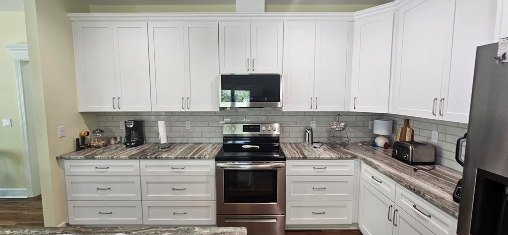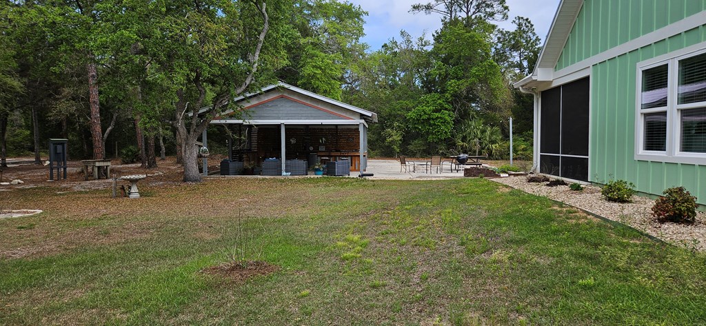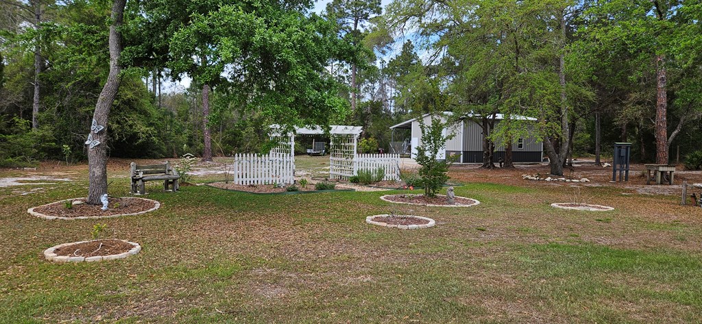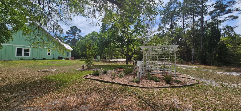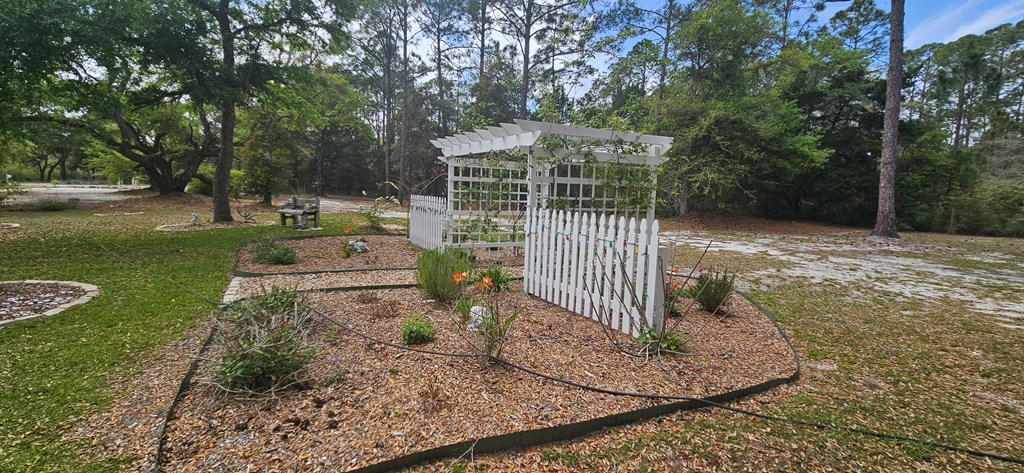 Beautiful Country Property – Move-In Ready with Exceptional Features! Welcome to this charming and energy-efficient 3-bedroom, 2-bath home offering over 1,800 square feet of comfortable living space, enhanced by extra windows that flood the home with natural light, all perfectly situated on 2.36 acres of beautifully landscaped property filled with flowers, mature trees, and lush plantings. The north side of the property borders peaceful forest land, adding privacy and a serene natural backdrop. Step inside to find a thoughtfully upgraded interior featuring granite countertops, wood cabinetry, tile backsplash, and high-end appliances in the kitchen. Stylish, upgraded lighting flows throughout the home, creating a warm and inviting atmosphere. The spacious master suite boasts a large customized walk-in closet and a beautifully designed custom walk-in shower, while the second bathroom features upgraded tile work and a modern tub/shower combination. Enjoy outdoor living at its finest with a covered front porch sitting area and a relaxing 16x12 screened back porch complete with ceiling fan and electrical outlets—perfect for entertaining or unwinding. This property is packed with extras: 24x24 pavilion with kitchen sink, water, power, ceiling fans, and string lighting—ideal for gatherings 24x30 metal barn with electricity, water, shelving, and a lean-to for boat storage (with room to expand) Two RV hookups with water and power Fenced garden area with water access. Multiple trellises with beautiful roses throughout the property. Additional highlights include: 2-car garage with upgraded door, City water & septic system, Energy-efficient home with low electric bills Included with the sale: All kitchen appliances, hot water heater, lighting fixtures, window treatments, blinds, flooring, pavilion bar and sink, barn shelving, fencing, and trellises.