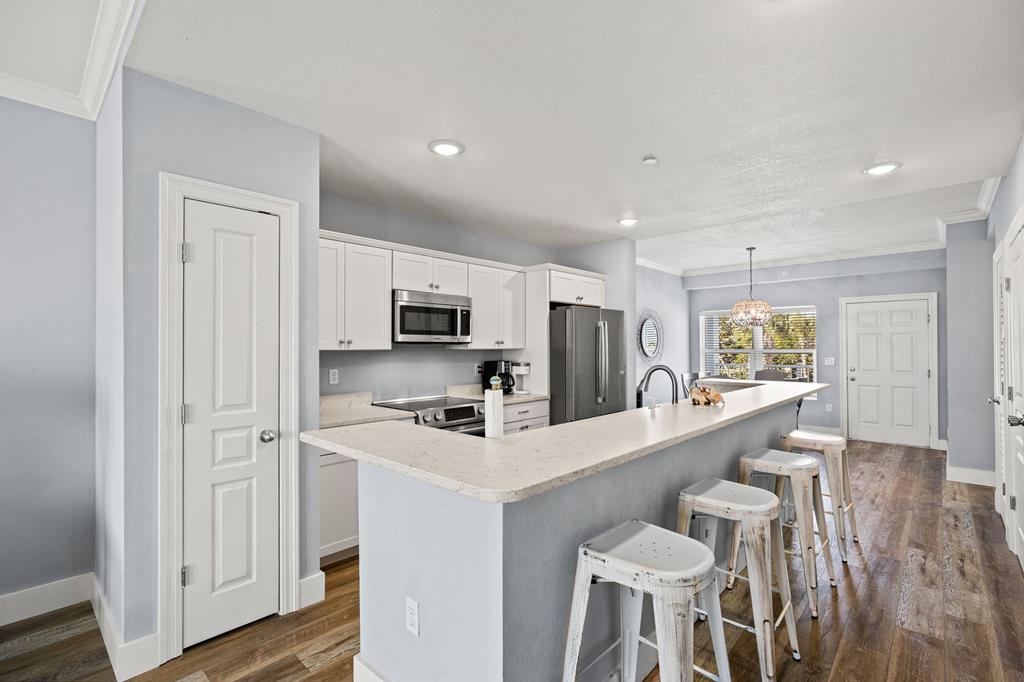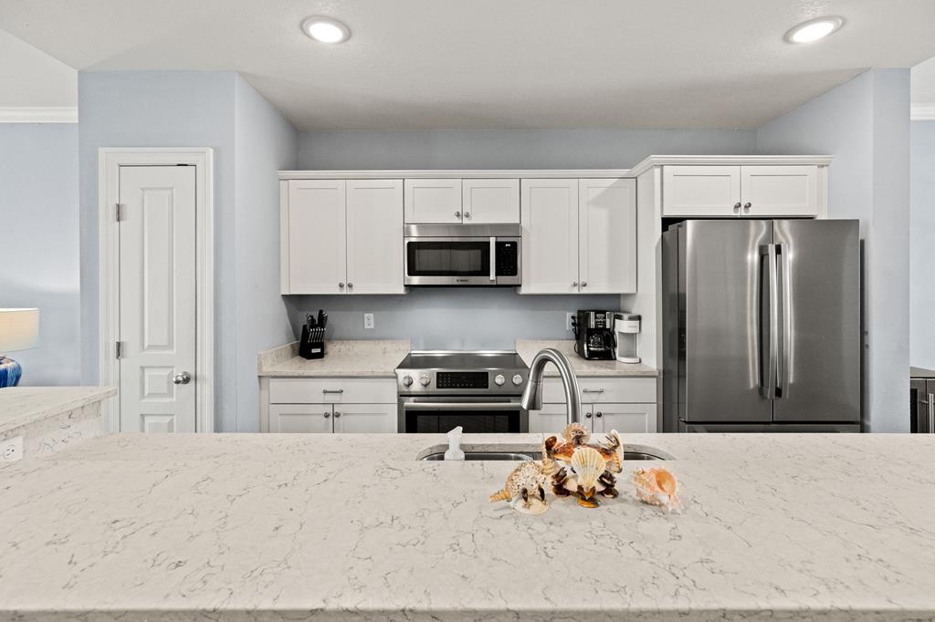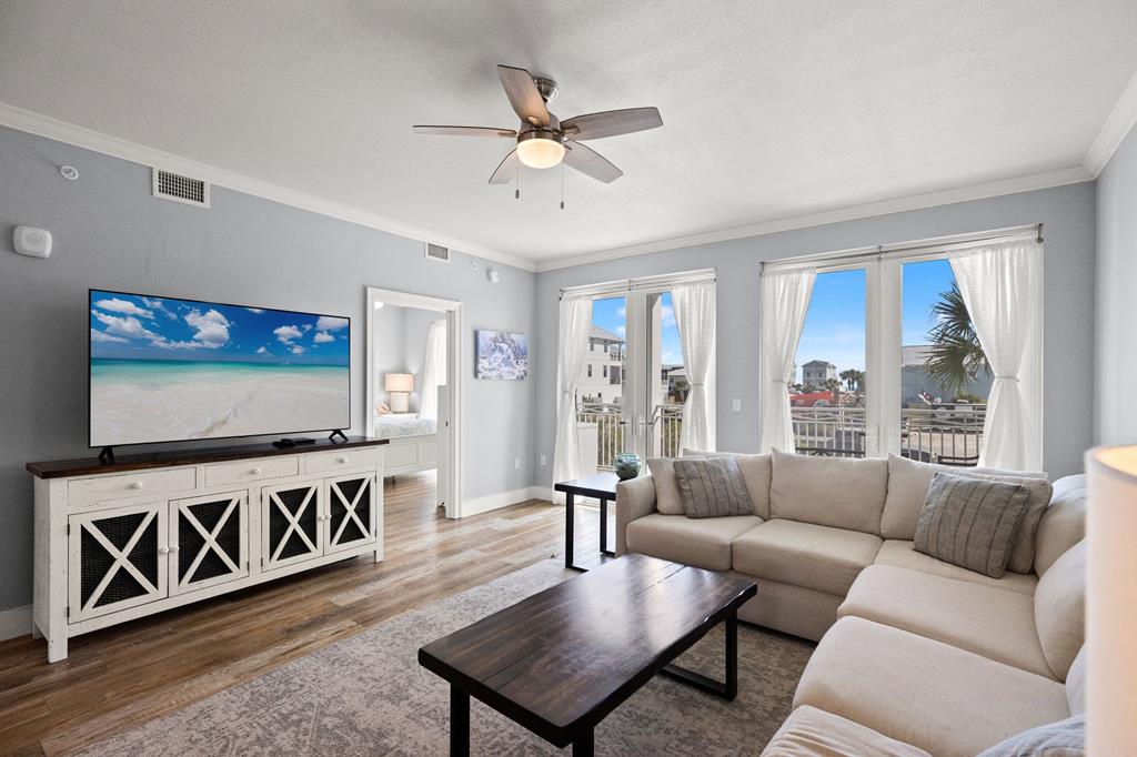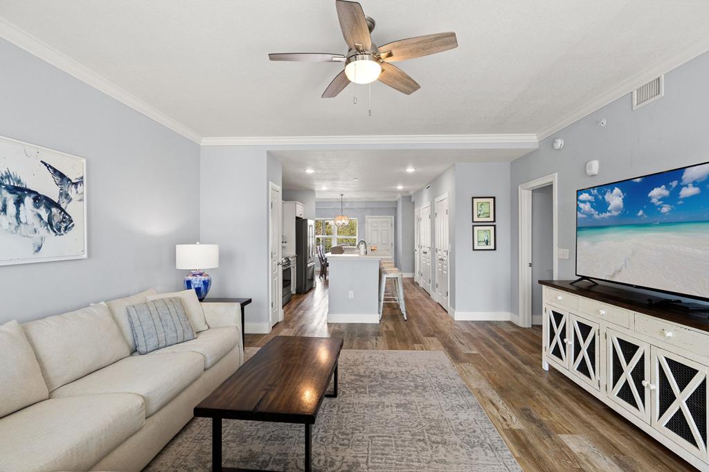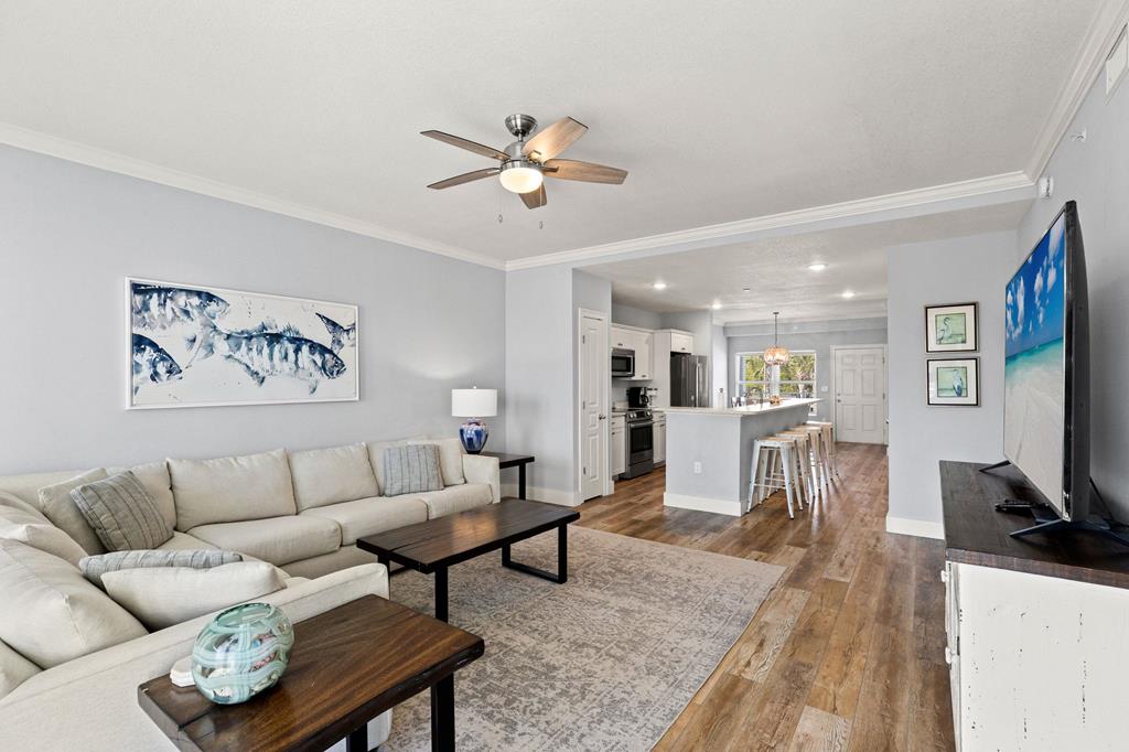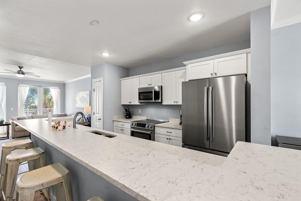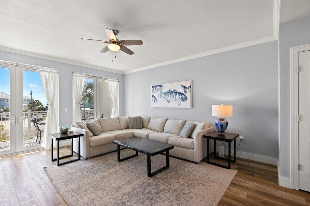 Welcome to Tranquil Harbour—where beach days and boat days come together. This beautifully maintained 3-bedroom, 2-bath condo includes a deeded boat slip and offers the perfect blend of coastal comfort and convenience. Step inside to a bright, open-concept living space featuring crown molding, durable wood-look flooring, and a spacious layout ideal for entertaining. The kitchen is equipped with quartz countertops, stainless steel appliances, and an oversized breakfast bar that flows seamlessly into the living and dining areas. Enjoy morning coffee or evening sunsets from your private balcony with Gulf views and coastal breezes just steps away. The primary suite is generously sized with an en-suite bath and walk-in shower, while two additional bedrooms provide plenty of space for guests or rental income potential. Additional features include in-unit laundry, ample storage, and turnkey-ready condition. Located just across from the beach with easy access to the Gulf and your private boat slip, this property is perfect as a full-time residence, vacation getaway, or investment opportunity. Boat slip. Gulf views. Prime location. This is Mexico Beach living at its best.
