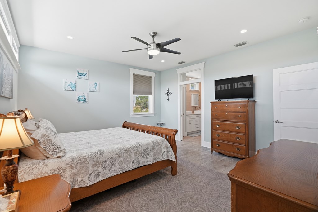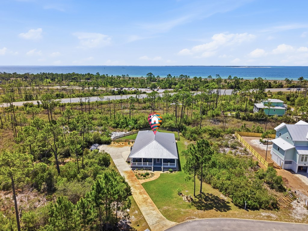 From Hwy 98, turn onto Sea Glass Dr in Sunset Village, then turn right onto Sting Ray Ln. House is on right before curve, see sign.