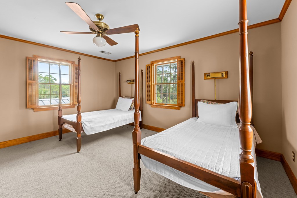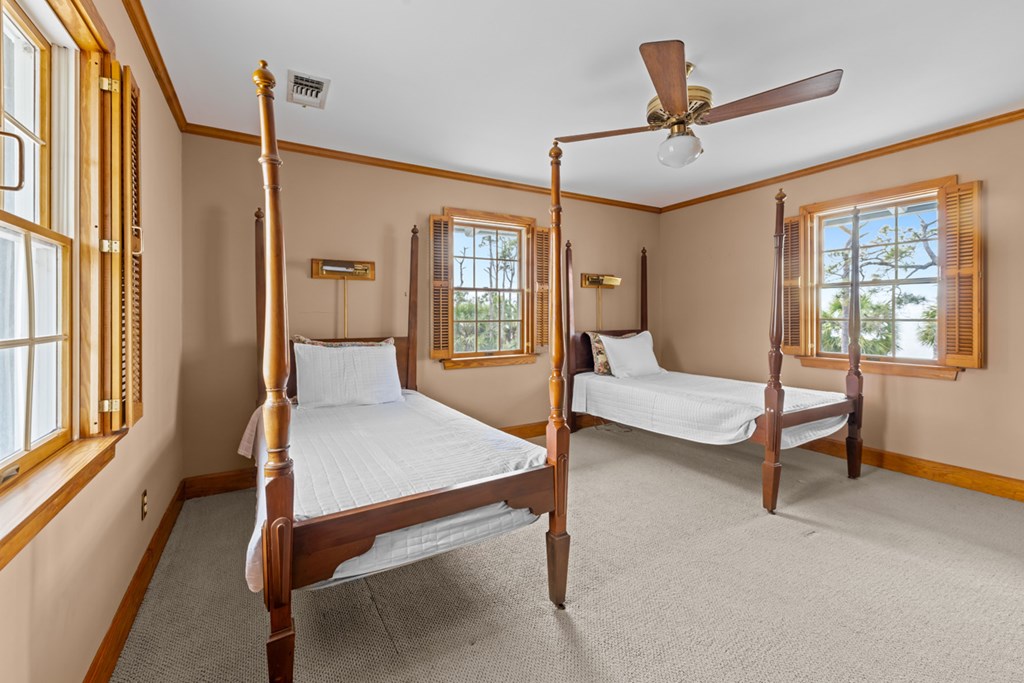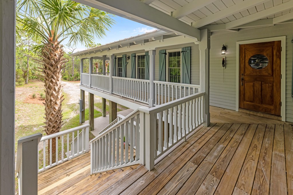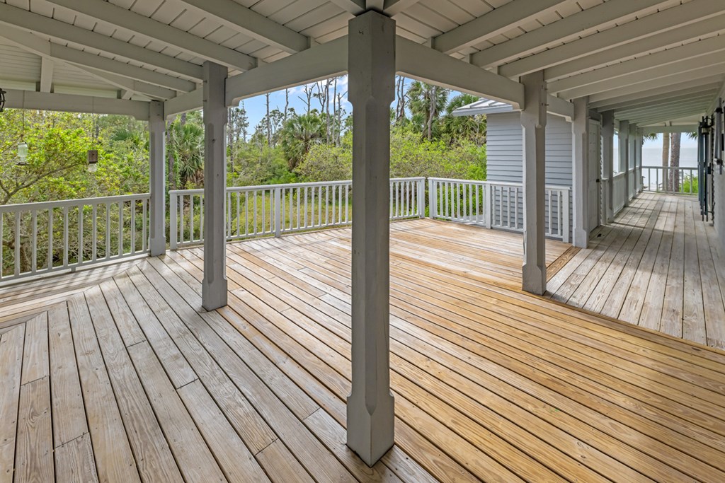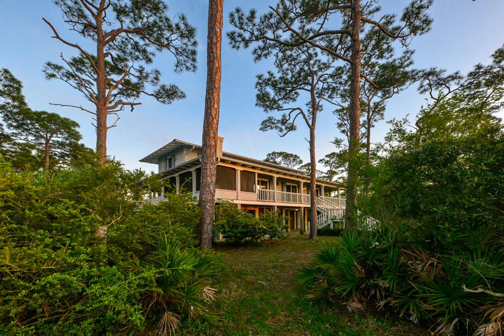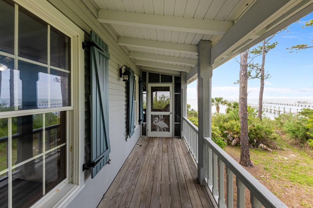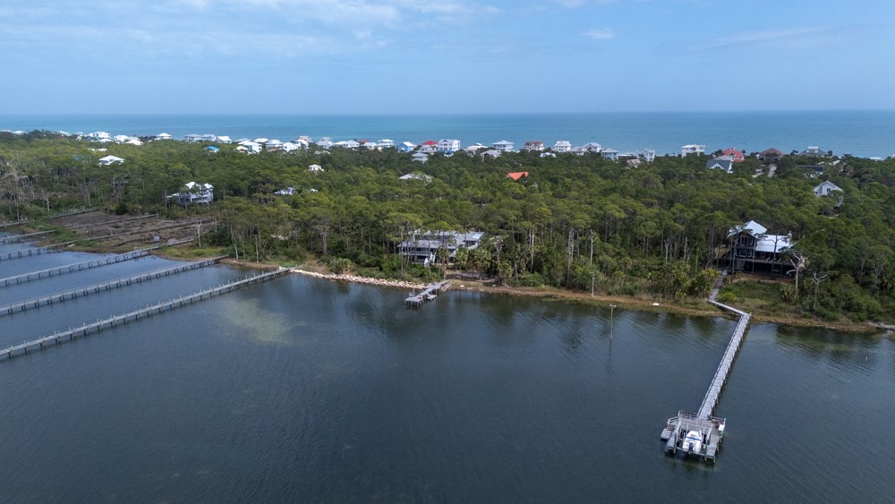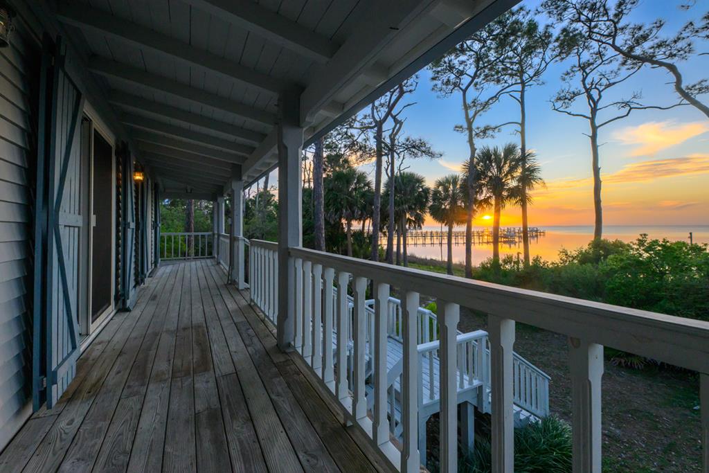 Welcome to a true bayfront retreat where Old Florida charm meets effortless coastal luxury. Nestled on a private, naturally wooded acre within the coveted Plantation community, this 3,000+ square foot residence captures the essence of island living with sweeping views of the emerald bay, serene flats, and endless skies. Designed for both relaxation and entertaining, the home features two spacious living areas that offer comfort and flexibility for gathering with family and guests. The primary suite is a private sanctuary, complete with an ensuite bath, generous walk-in closets, and a large soaking tub perfect for unwinding after a day on the water. The thoughtful layout includes a lower level bedroom for convenience, while two additional bedrooms upstairs provide privacy and elevated views. Expansive wraparound porches invite you to enjoy coastal breezes, swaying palms, and ever-changing bay views. Just moments away, the pristine white sand beaches of St. George Island stretch for miles, offering some of the most untouched shoreline on the Gulf Coast. Spend your days beachcombing, boating, or simply taking in unforgettable sunsets. Inside, timeless details like a cozy fireplace and classic Florida interior shutters pair beautifully with exterior shutters that enhance both charm and function, creating a warm and refined Old Florida feel. This property is a fisherman's paradise with incredible waterfront potential and access to some of the area's best fishing. An adjacent lot is also available, offering a rare opportunity to expand your private coastal estate. Located within the Plantation, residents enjoy multiple pools, a clubhouse with exercise room, a private airstrip, and proximity to prime fishing at the cut. By boat, explore St. George Island or Apalachicola with ease. This is more than a home. It is a lifestyle defined by nature, privacy, and the beauty of the Forgotten Coast. .5% buyer fee for Plantation HOA