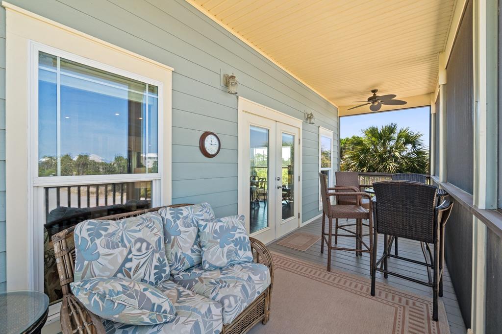 MOVE IN READY, WITH UNOBSTRUCTED BAY VIEWS, totally furnished, well maintained beach home is located in a gated neighborhood, deeded beach access, a community pool and backs up to the state park. There is enclosed parking for your golf cart, long boards, fishing poles, plus a vehicle. Just outside of garage is an outdoor shower to get the beach sand off. Inside you will find 3 bedrooms and 2 baths with an open floorplan that opens up to a large screened porch in the front and a covered deck in the rear. This neighborhood allows short term rentals if you do not wish to use as your primary or secondary residence. Sellers insurance for homeowners runs $2583.90 at this time with Hannon Insurance but is specific per owner so please get your own quote. Come see this peaceful getaway for yourself!