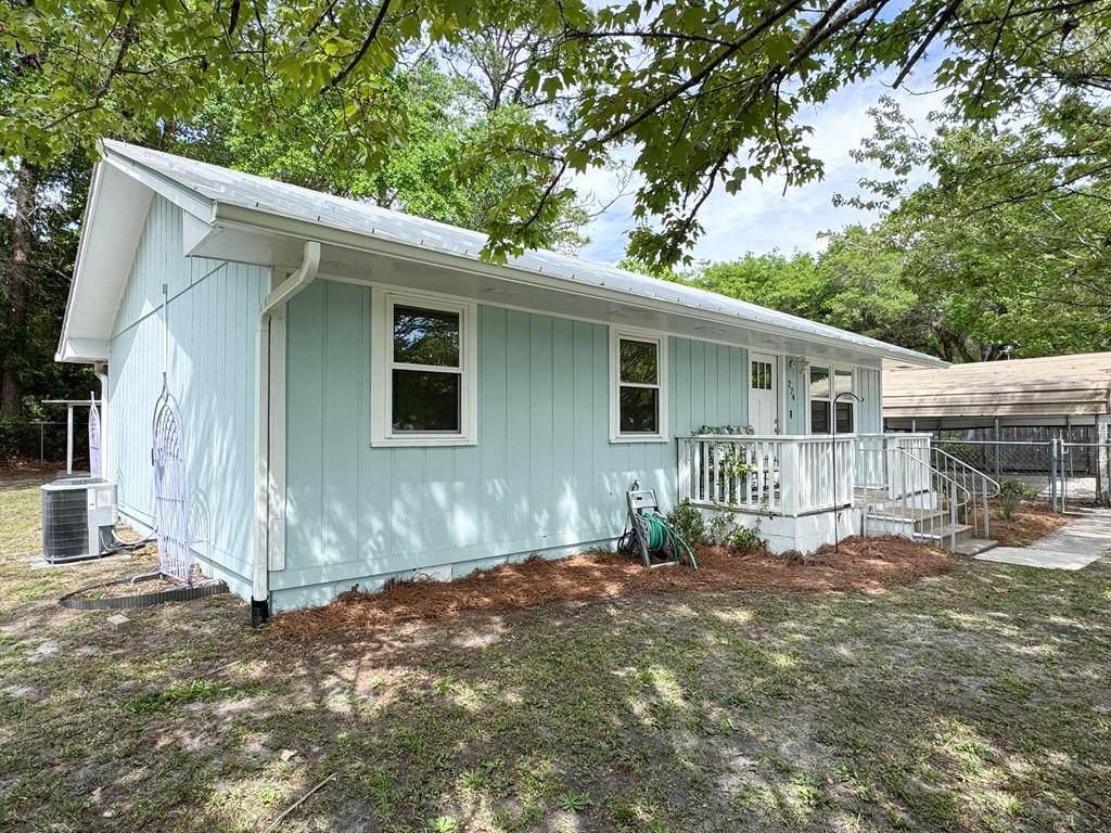 Beautifully renovated and freshly professionally painted, this move-in ready 3-bedroom, 2-bath, 988 sq ft home in Apalachicola offers the perfect blend of comfort and functionality. Thoughtfully updated in 2020, the home features engineered flooring, double-hung impact windows, a standing seam metal roof, and updated plumbing, electrical, HVAC, and water heater. The kitchen has been fully refreshed with updated cabinetry, fixtures, a roof-vented stove exhaust, and Samsung stainless steel appliances. The primary suite includes a private en suite bath with a glass door shower enclosure. Step outside to enjoy a covered patio that is ideal for relaxing or entertaining. The property also includes a 300 sq ft workshop with additional covered space for golf carts or small boats, plus a convenient two-car carport just outside the home. Situated on six 30-foot-wide lots totaling approximately 0.41 acres, the mostly fenced yard offers plenty of space and flexibility. A large access gate provides easy entry for additional parking, making it ideal for boats, trailers, or other recreational equipment. Three of the lots create a spacious, fenced-in area perfect for kids, pets, or a thriving garden, all tucked beneath a peaceful canopy of mature trees that adds natural shade and a sense of privacy. This flexible space also offers potential for future development. With six lots, there is potential to subdivide and build an additional home on two or three of the lots, offering added investment or expansion opportunity. A rare opportunity with space, updates, and move-in ready appeal in Apalachicola.