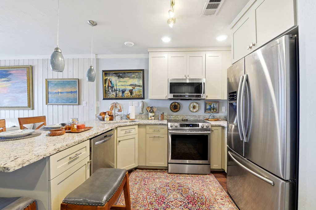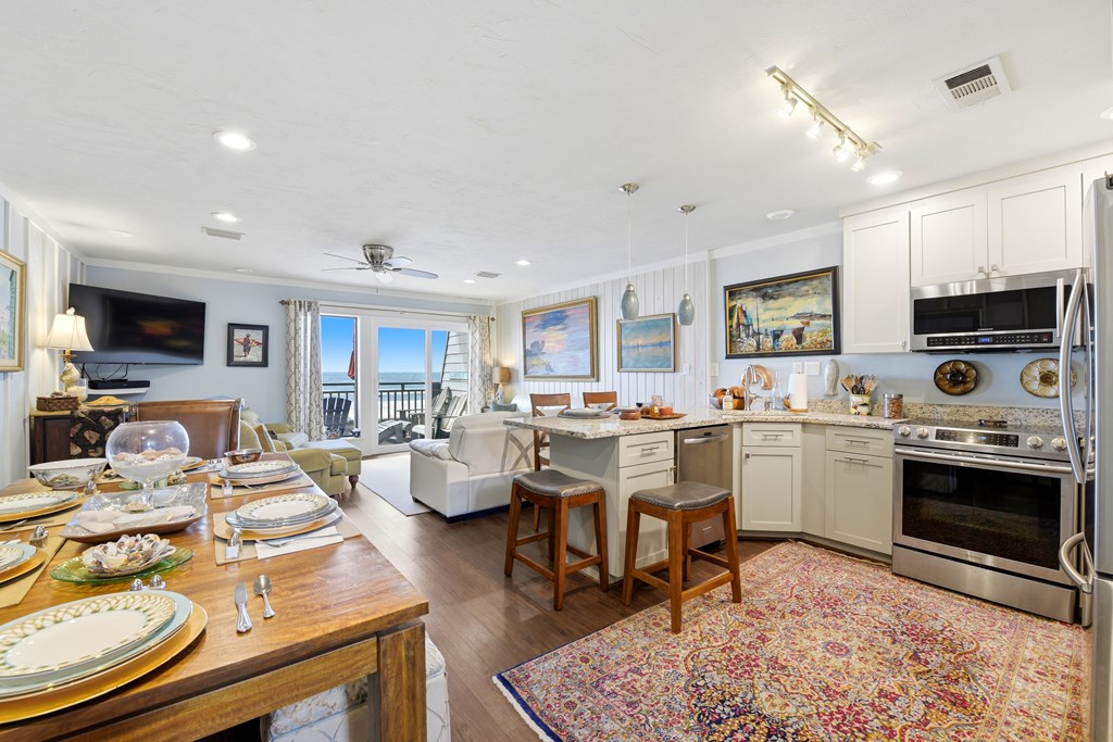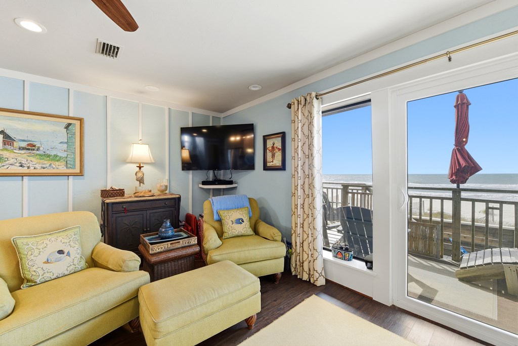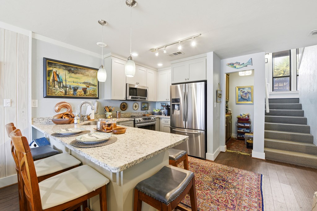 Renovated Beachfront Townhouse in Desirable East End Location! This beautifully updated 3 bedroom townhouse has been thoughtfully renovated from top to bottom, featuring all new electrical (including stylish light fixtures and ceiling fans), plumbing, luxury vinyl flooring, cabinets, granite countertops, and appliances. Enjoy the added value of a new upstairs deck, a spacious downstairs butler pantry, and raised ceilings in the kitchen, hallway, stairs, creating an open and airy feel throughout. Additional upgrades include a new roof (2025), new sliding glass doors upstairs and down, and updated windows. The fireplace has been removed to maximize space and functionality. Located at 300 Ocean Mile on the sought-after east end of the island, the community offers two swimming pools, eight park grills, convenient beach access walkovers, and miles of pristine white sandy beaches—all pet friendly. This is coastal living at its best! HOA includes sewer utilities, basic cable, garbage pick up. Showings to be made by appointment.