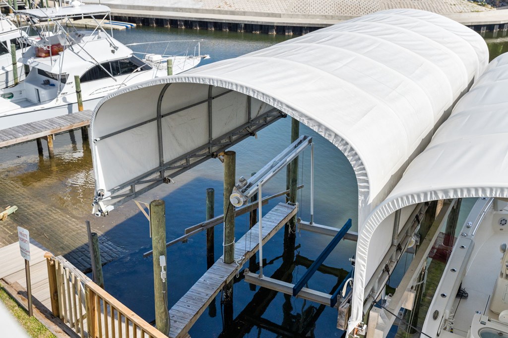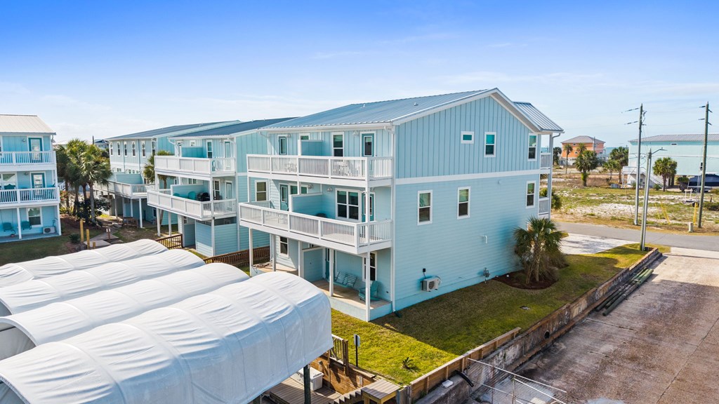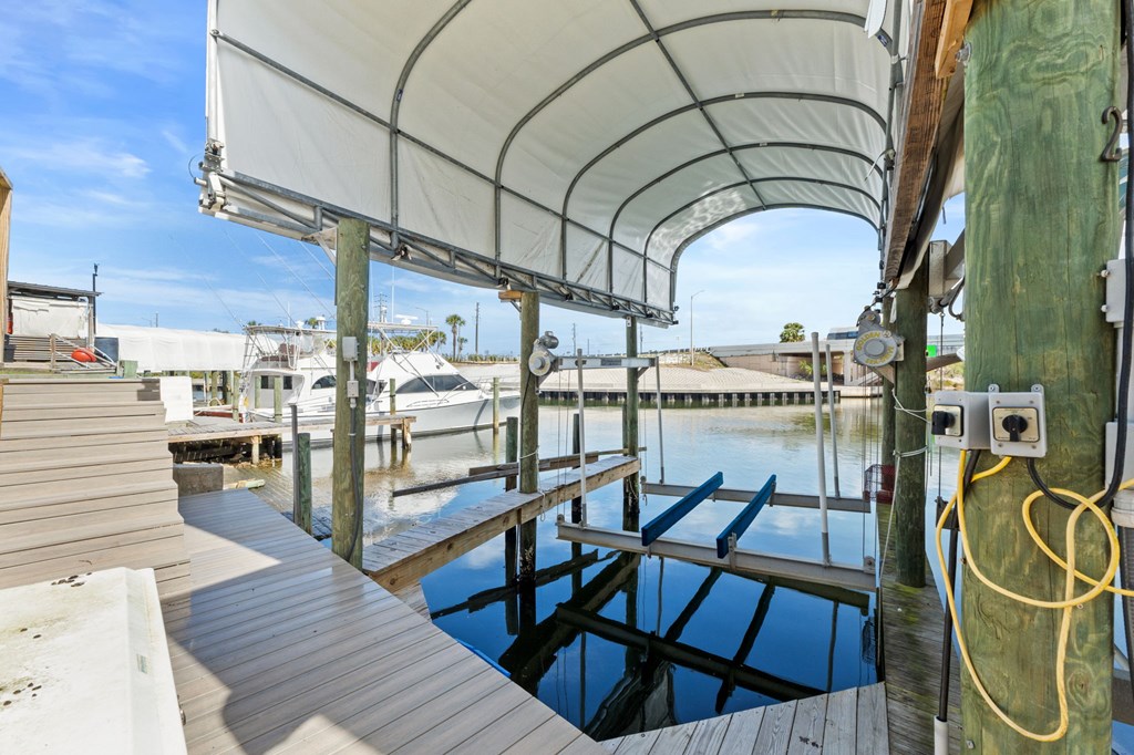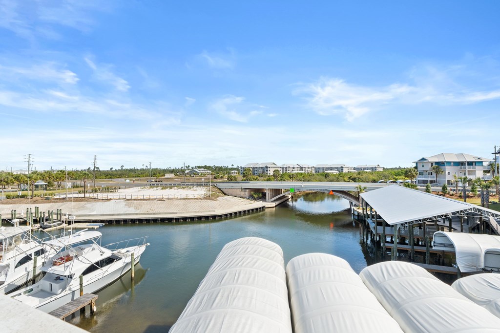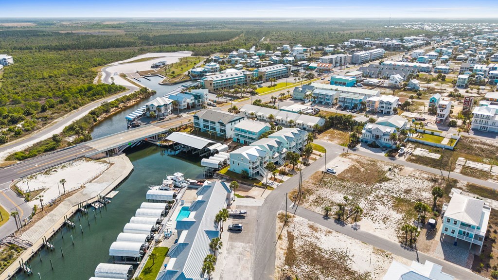ATTENTION BOATERS AND FISHERMEN! CANAL FRONT, BEACHSIDE NEWLY BUILT TOWNHOME WITH COVERED BOAT SLIP! Don't miss this rare opportunity to own a canal-front property on the beachside of Hwy 98. This beautiful 3 BR/3.5 BA townhome with an additional bunk area is located a half block from the beach making it perfect for the fisherman and family! The townhome is beautifully furnished with high-end furniture, making it truly turnkey. Upon entry, you will notice the Coretec LVP that is throughout the main floor as well as the Wet bar featuring a beverage cooler and additional cabinet space. Making your way into the kitchen you will see the custom cabinets, granite countertops, and Bosch stainless steel appliances. The first floor features the garage, perfect for parking or storing fishing equipment and beach gear, and the first bedroom which is an ensuite with a tiled walk-in shower and access to a private porch overlooking the canal. The main floor features a kitchen with custom cabinets, granite countertops, and Bosch stainless steel appliances, a living room with a wet bar that holds a beverage fridge, a powder room, and the laundry room, which features a GE washer and dryer. The top floor features the master suite, with dual vanities, an oversized walk-in shower, and a private balcony perfect for watching the boats come by, an additional bedroom with its own bathroom and balcony with a GULF VIEW, and an additional bunk area, holding two twin-size built-in bunks. The amenities of the property include a personal covered boat slip with a 13,000 lb lift, great deck space, and a 13x15 garage. Being on the beach side eliminates the worry of having to go under the Hwy 98 bridge which is perfect for anyone with a tower. Don't miss this rare opportunity!