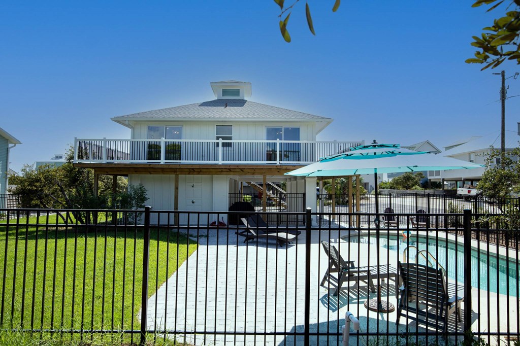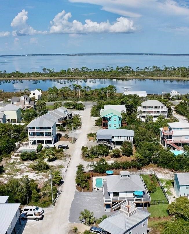 This is a unique two bedroom, three bath home with a deck, private inground pool surrounded by a lush landscape and fenced yard. Covered area with seating and grill area just off of the pool deck with full bathroom for added convenience. Open and airy are the best words to describe this cozy home. High end appliances and gold hardware accent the beautiful finishes. It's small, but classy and luxurious. Complete renovation in 2024! Cape San Blas is a place where families come to relax, friends unite, and memories are made. This fifteen mile west-facing peninsula in the panhandle of Florida offers amazing white sand beaches, emerald gulf waters and the highest dunes on the gulf coast. The TH Stone Memorial State Park and all its untouched tropical nature is just three short miles north (a short bike ride or walk). Oversized parking to accommodate a boat with freshwater hose bibs for rinsing. Bedroom 1: King ensuite, private bath, single vanity, shower, deck access. Bedroom 2: King ensuite, corner shower, single vanity, shower, TV, deck. Ground level: Parking for six+ vehicles and trailers Covered storage/beach chairs. Stairway to main entry. Private inground heated pool with lush lawn, lounge seating and outdoor shower. Full bath with walk-in shower. Locking beach gear closet Weber grill Easy beach access Second Level: Main entry access via steps from ground level. Elevated 360 degree wrap around composite deck w/views of gulf. Livingroom w/fireplace, 75” smart TV and plenty of seating. Kitchen with GE Caf appliances, fully stocked pantry and island seating for four. Two king bedrooms with direct access to decks. Laundry closet. Open Gourmet kitchen with large quartz island, top of the line appliances (48 inch freezer/fridge, two dishwashers, 2 large sinks, 48 inch Wolf range), and tons of serving/pantry items. Reverse Osmosis water line for drinking and ice maker. Whole house water softener