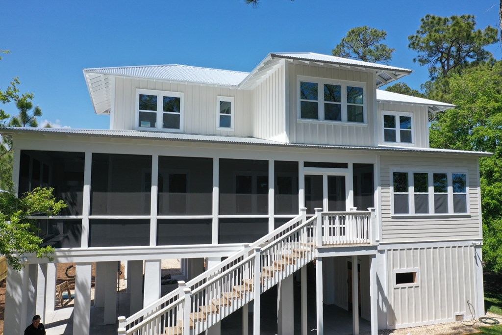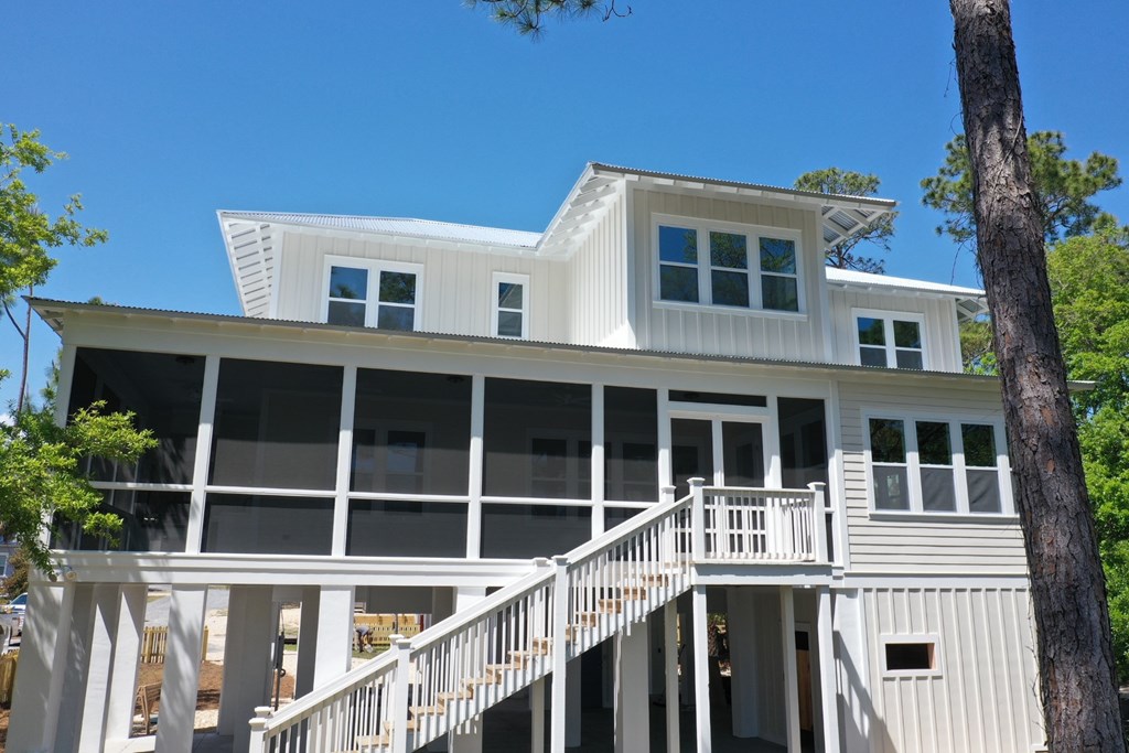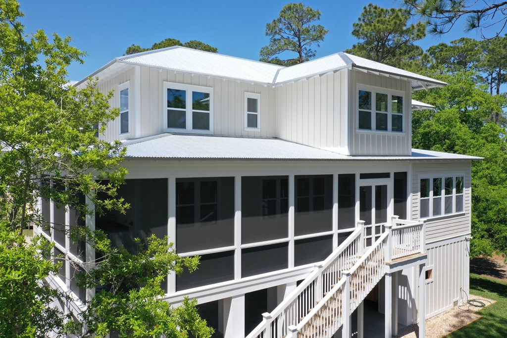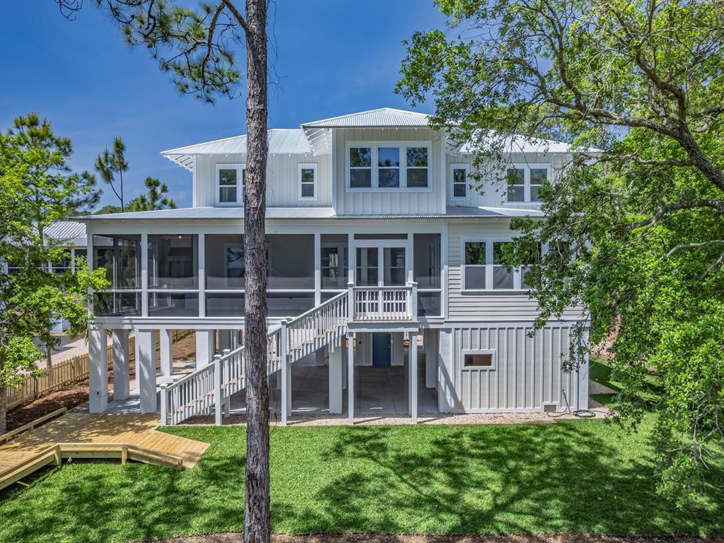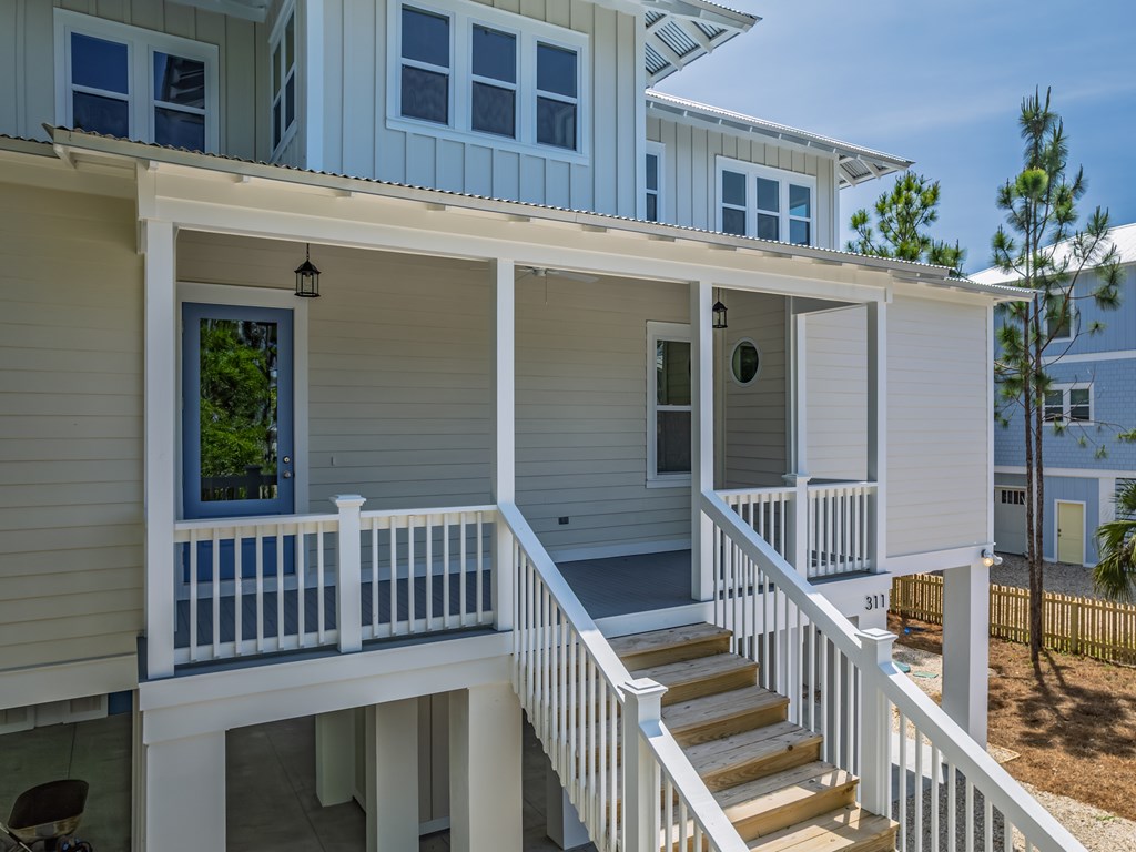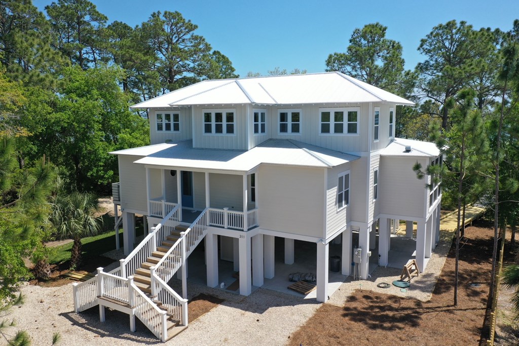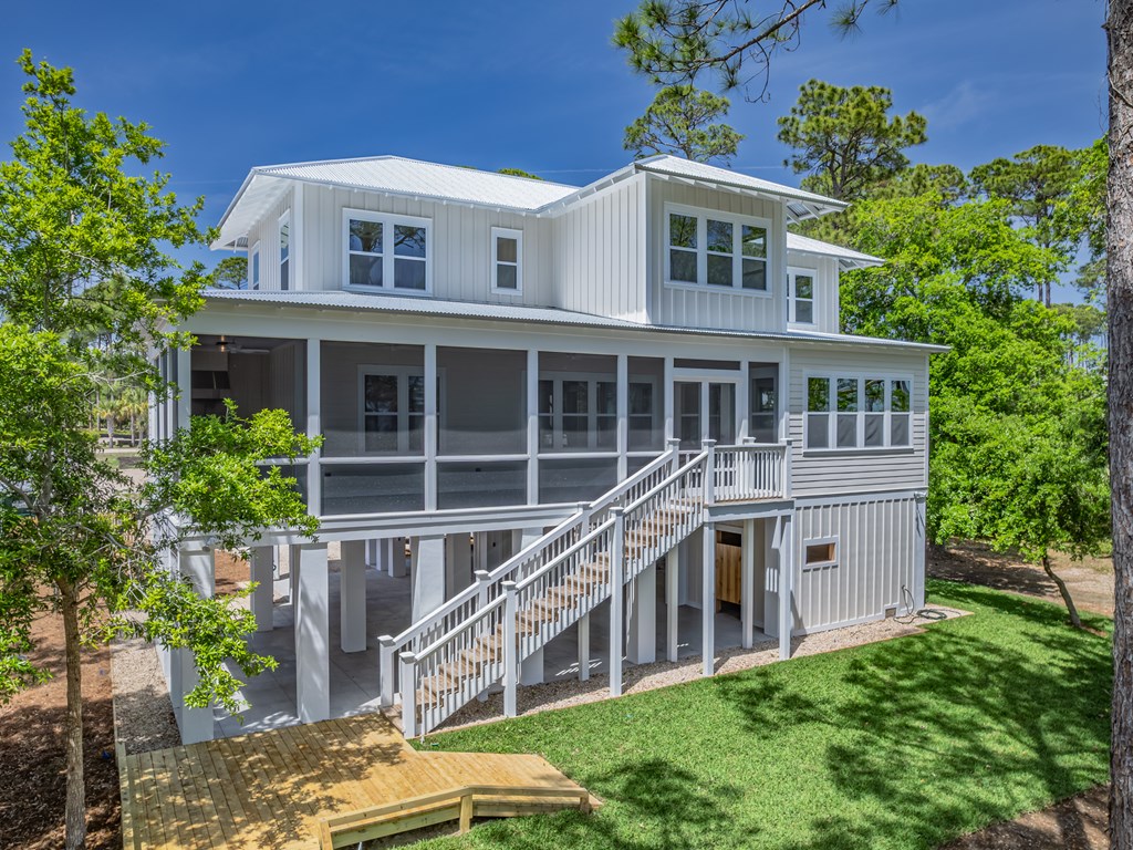 Welcome to 311 Trails End Way, the crown jewel of SummerCamp Beach in St. Teresa, Florida. Set on an extraordinary 1.27-acre Gulf-front homesite with 137 feet of prime white sandy beach frontage, this newly constructed coastal retreat offers a rare combination of luxury, privacy, craftsmanship, and timeless Old Florida character. Designed as an homage to the classic Florida coastal cottages, this exceptional residence lives like a modern masterpiece. Spanning approximately 2,500 square feet, the home features 4 bedrooms, 4 full bathrooms, and 1 half bath, with panoramic Gulf views from every bedroom and every main living space. With no neighboring home and permanently conserved land to the east, the property enjoys forever-protected views, unmatched privacy, and an irreplaceable sense of serenity. Inside, the quality is immediately evident. Genuine 3/4-inch pine floors run throughout, while the main living areas are wrapped in rich tongue-and-groove pine walls, creating warmth, texture, and authentic coastal charm. The builder reportedly reserved this wood for years waiting for the right home—and it shows. The kitchen is beautifully appointed with quartz countertops, stainless steel GE appliances, and a wine refrigerator, while the bathrooms feature granite countertops for a refined finish. Outdoor living is equally impressive. A 12-foot-wide screened porch stretches across the Gulf side of the home and is complete with an outdoor kitchen, creating the perfect setting for dining, entertaining, or simply taking in the breeze and endless water views. Additional highlights include a 3-stop elevator, outdoor shower, insulated vinyl windows, and easy access to the community pool just a short walk away. This is a rare opportunity to own a distinctive luxury beachfront home in St. Teresa, Florida—where authentic Old Florida style meets elevated modern coastal living.