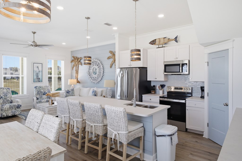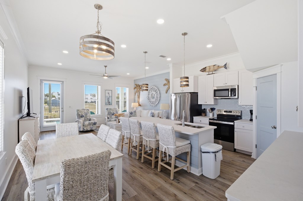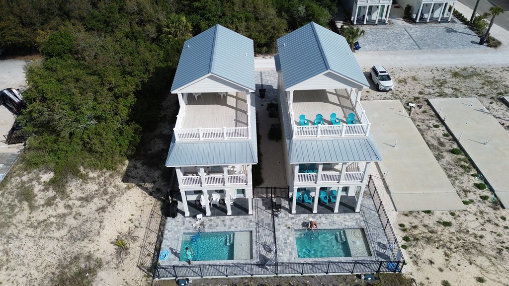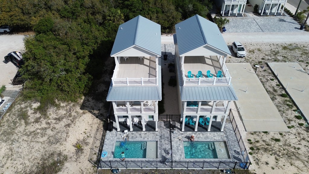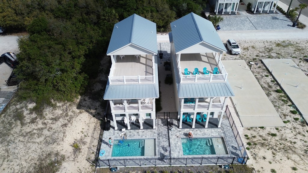 Experience elevated coastal living in this newly built (2024) 3-bedroom, 4-bath Gulf-view home with a private pool—designed for both luxury and laid-back island living. Sold fully furnished and completely turnkey, this property is ready to enjoy from day one. Rare opportunity to own a home in the highly desirable X flood zone on St. George Island—no flood insurance required. With total insurance costs of approximately $4,200 annually, this property offers a significant advantage in both affordability and long-term ownership. Built in 2024 and fortified with the Gold Bolt System, the home is engineered for superior durability—anchoring the roof, walls, and foundation together to deliver exceptional high-wind protection. Ideally located just steps from the island's beautiful beaches, restaurants, and shops, the setting offers both convenience and strong rental appeal. New to the short-term rental market, the property also presents an excellent opportunity to generate income and build future bookings. Inside, you'll find 10-foot ceilings, luxury vinyl plank flooring, and a thoughtfully designed custom kitchen with premium cabinetry. Each bathroom is beautifully finished, while a stylish wet bar creates the perfect space for entertaining. The top floor offers a bonus sleeping area with bunk beds, maximizing occupancy and rental appeal, and opens directly onto a spacious sundeck with sweeping Gulf views—perfect for relaxing and enjoying the coastal setting. Whether you're searching for a second home, a vacation retreat, or a rental investment, this property offers the ideal blend of style, location, durability, and versatility.