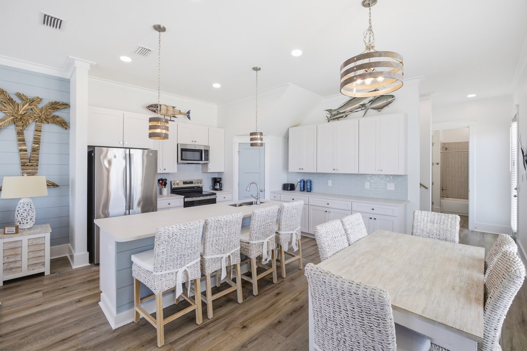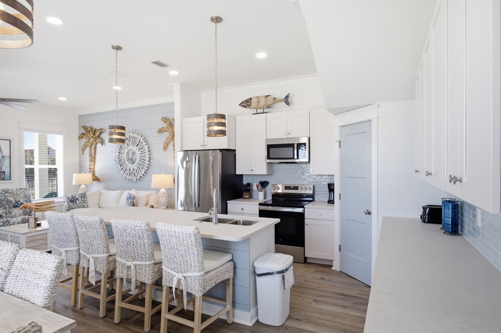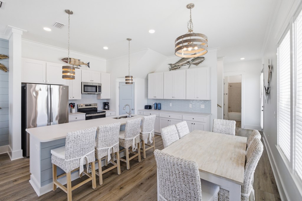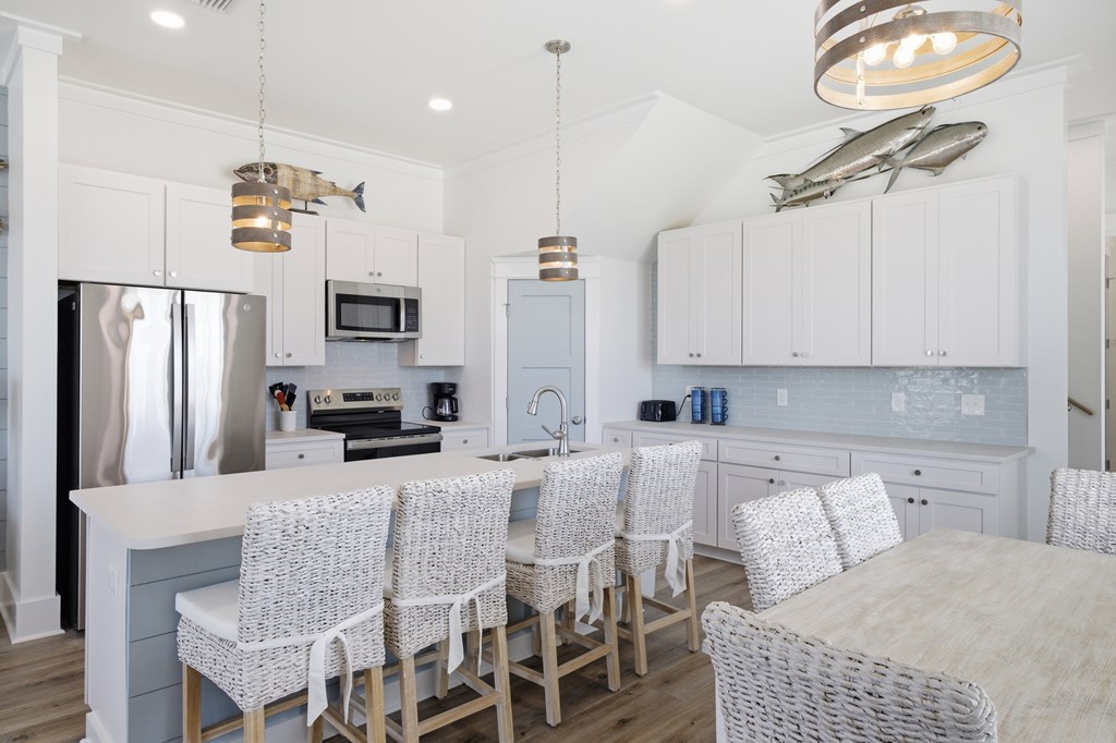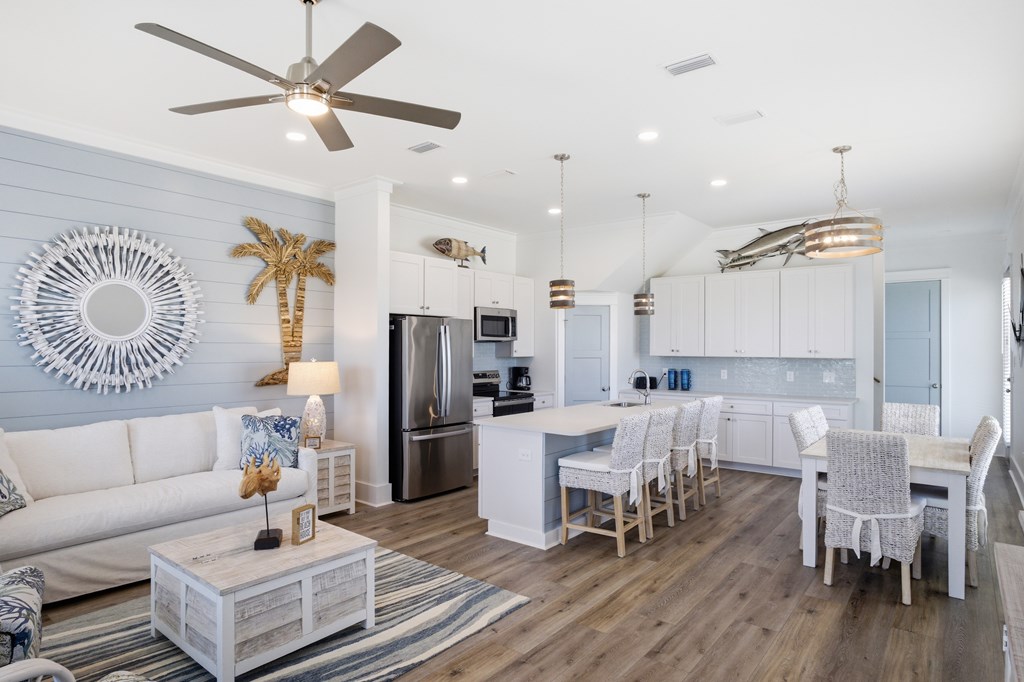 Experience elevated coastal living in this newly built (2024) 3-bedroom, 4-bath Gulf-view home with a private pool—designed for both luxury and laid-back island living. Sold fully furnished and completely turnkey, this property is ready to enjoy from day one. Rare opportunity to own a home in the highly desirable X flood zone on St. George Island—no flood insurance required. With total insurance costs of approximately $4,200 annually, this property offers a significant advantage in both affordability and long-term ownership. Built in 2024 and fortified with the Gold Bolt System, the home is engineered for superior durability—anchoring the roof, walls, and foundation together to deliver exceptional high-wind protection. Ideally located just steps from the island's beautiful beaches, restaurants, and shops, the setting offers both convenience and strong rental appeal. New to the short-term rental market, the property also presents an excellent opportunity to generate income and build future bookings. Inside, you'll find 10-foot ceilings, luxury vinyl plank flooring, and a thoughtfully designed custom kitchen with premium cabinetry. Each bathroom is beautifully finished, while a stylish wet bar creates the perfect space for entertaining. The top floor offers a bonus sleeping area with bunk beds, maximizing occupancy and rental appeal, and opens directly onto a spacious sundeck with sweeping Gulf views—perfect for relaxing and enjoying the coastal setting. Whether you're searching for a second home, a vacation retreat, or a rental investment, this property offers the ideal blend of style, location, durability, and versatility.