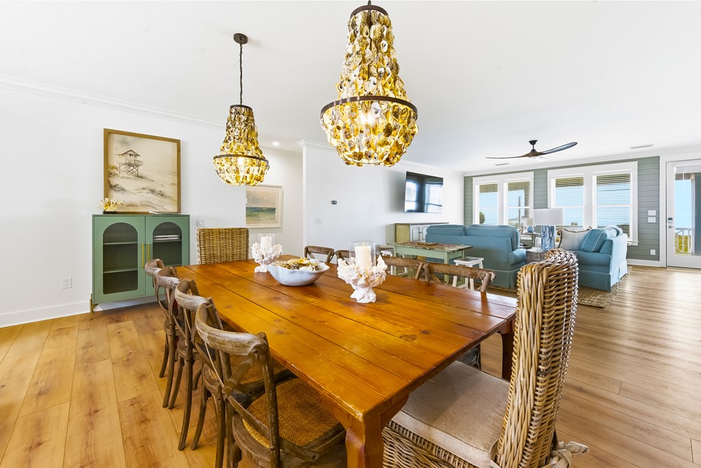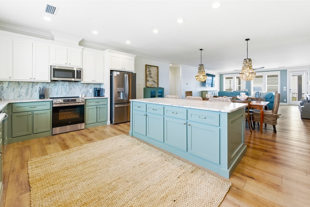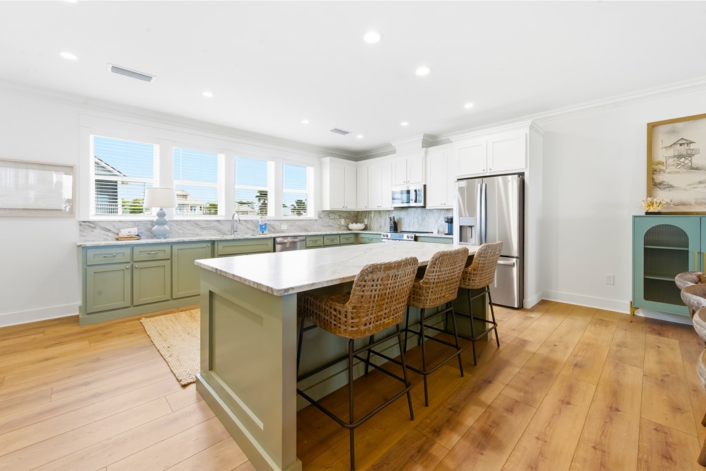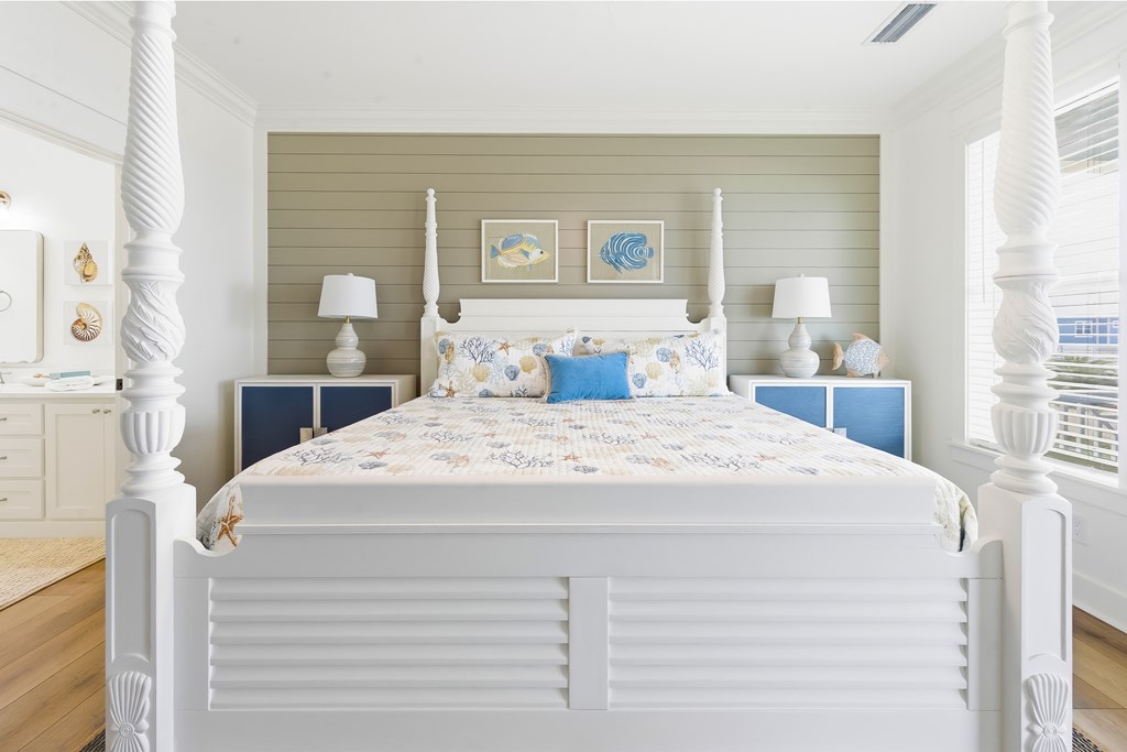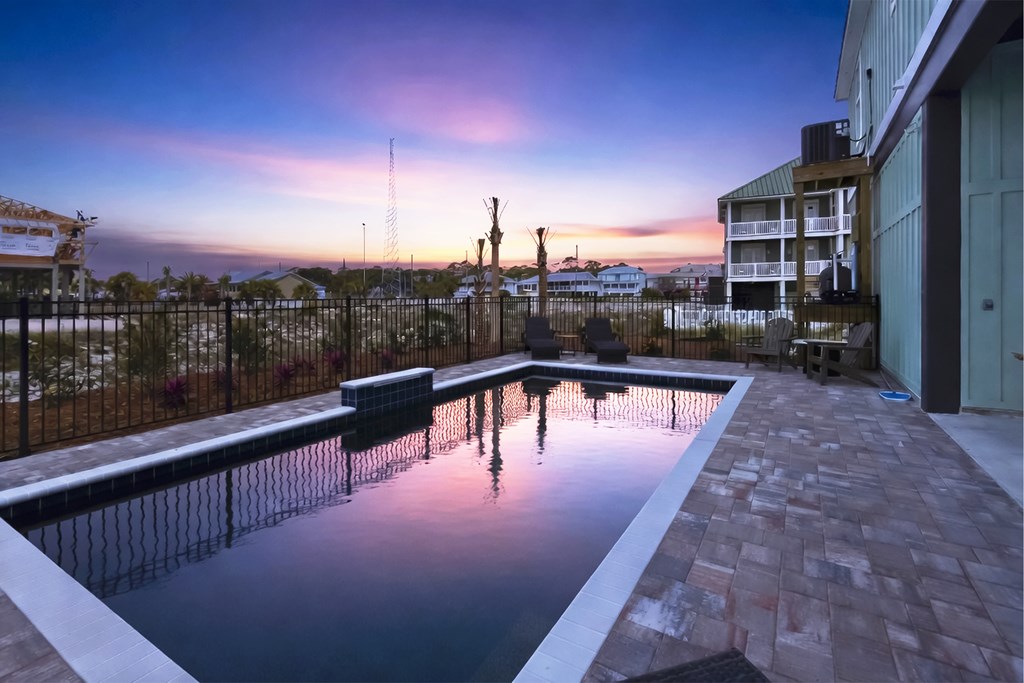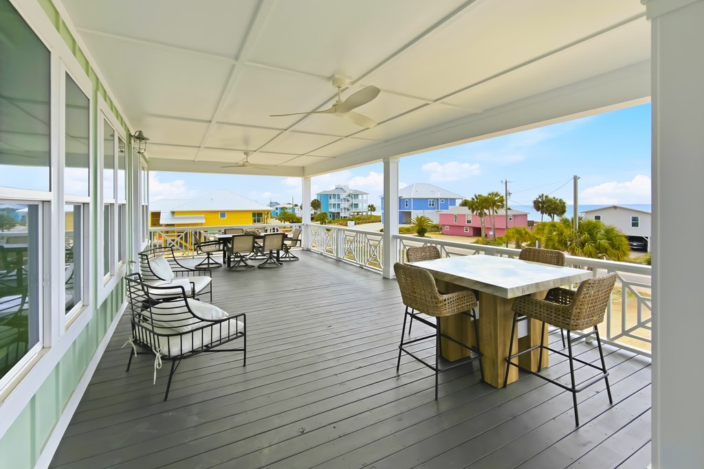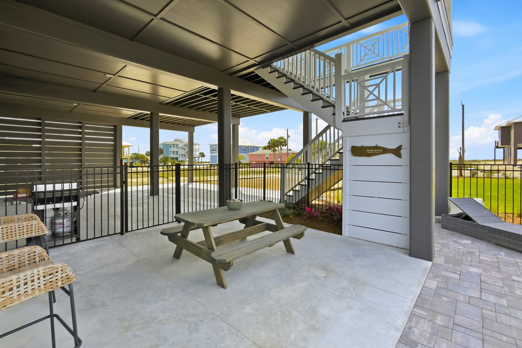 Beautiful new construction beach house in the desirable Gulf Beaches area, perfectly positioned just across the street from the beach. This 4-bedroom, 4-bath home offers stunning beach views from the expansive 640-square-foot furnished deck, designed for relaxing, entertaining, and enjoying the coastal breeze. Inside, the thoughtfully designed split floor plan features a spacious great room. The home features 9-foot interior ceilings, creating an open and airy feel throughout. The large kitchen offers abundant cabinet space, granite countertops, stainless steel appliances, and an open flow into the main living and dining areas. Luxury vinyl plank flooring, crown molding, shiplap accent walls, solid wood interior doors, and beautifully selected dcor create a warm yet refined coastal atmosphere. Three of the four bedrooms feature private ensuite bathrooms, offering comfort and privacy for guests and owners alike. Large windows throughout the home fill the interior with natural light, while the oversized laundry room provides excellent space for additional storage. Outdoor living is just as impressive with a professionally landscaped and maintained yard, custom wood deck railings, a wide exterior staircase, enclosed outdoor shower, and a stunning 26' x 13' Gunite pool complete with a sun shelf. The brick pool deck and patio area create the perfect oasis for sunbathing and entertaining. Additional features include an elevator for convenience and a garage/storage area under the home, ideal for your golf cart and beach gear. Located in the golf cart-friendly Gulf Beaches community, this home is close to the bike path and just over a mile from groceries, gas, shops, and restaurants—offering the perfect blend of luxury, comfort, and island convenience. Construction was completed early 2026 and new to the vacation rental market.