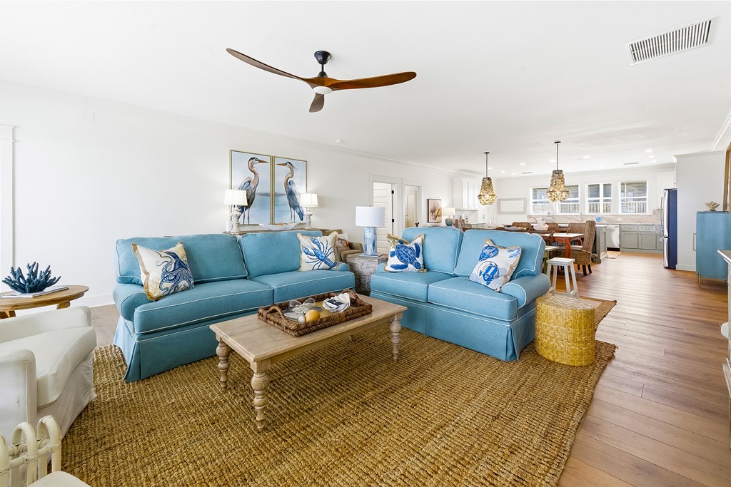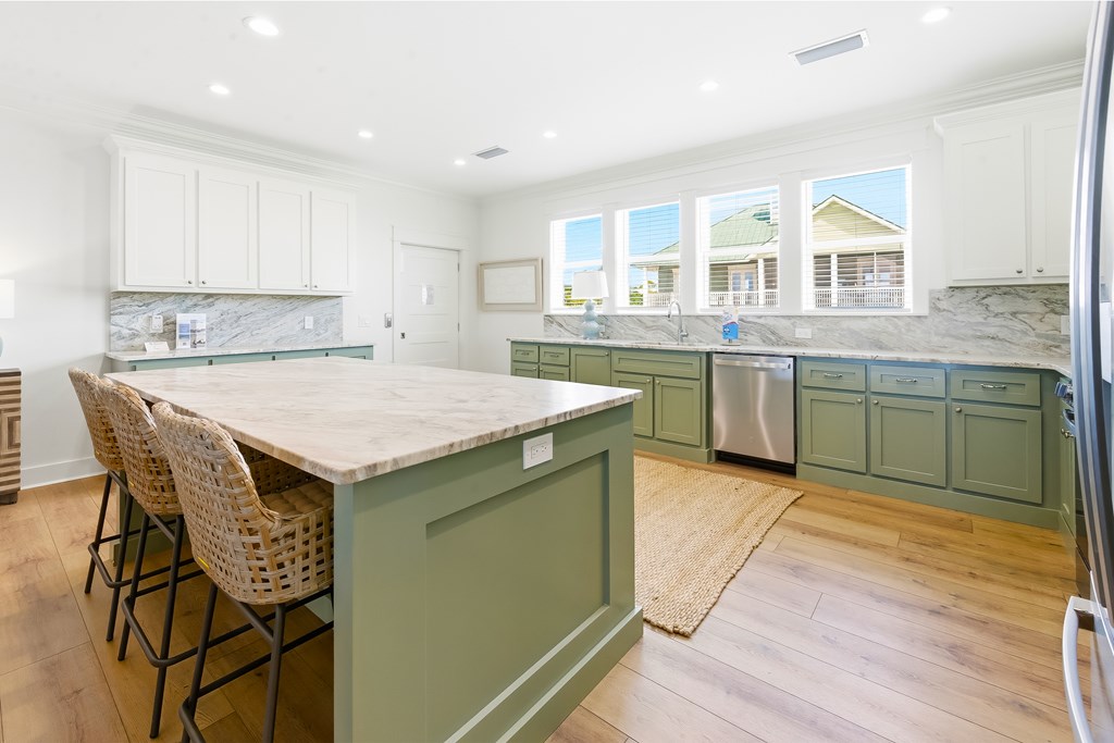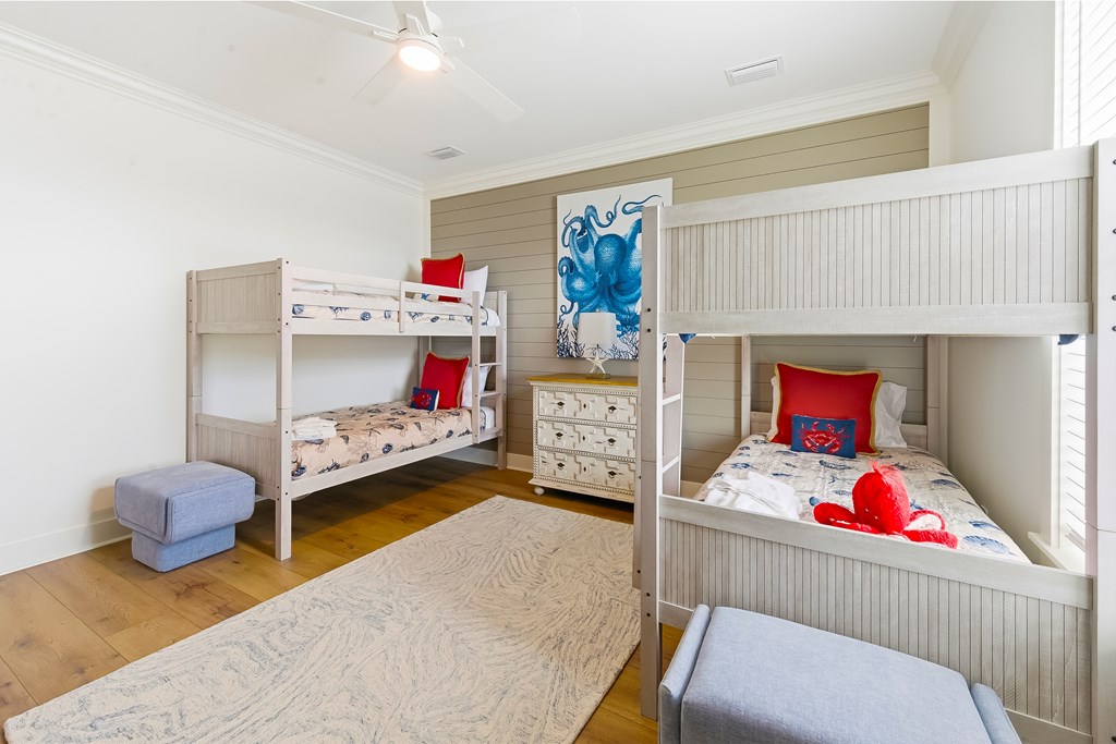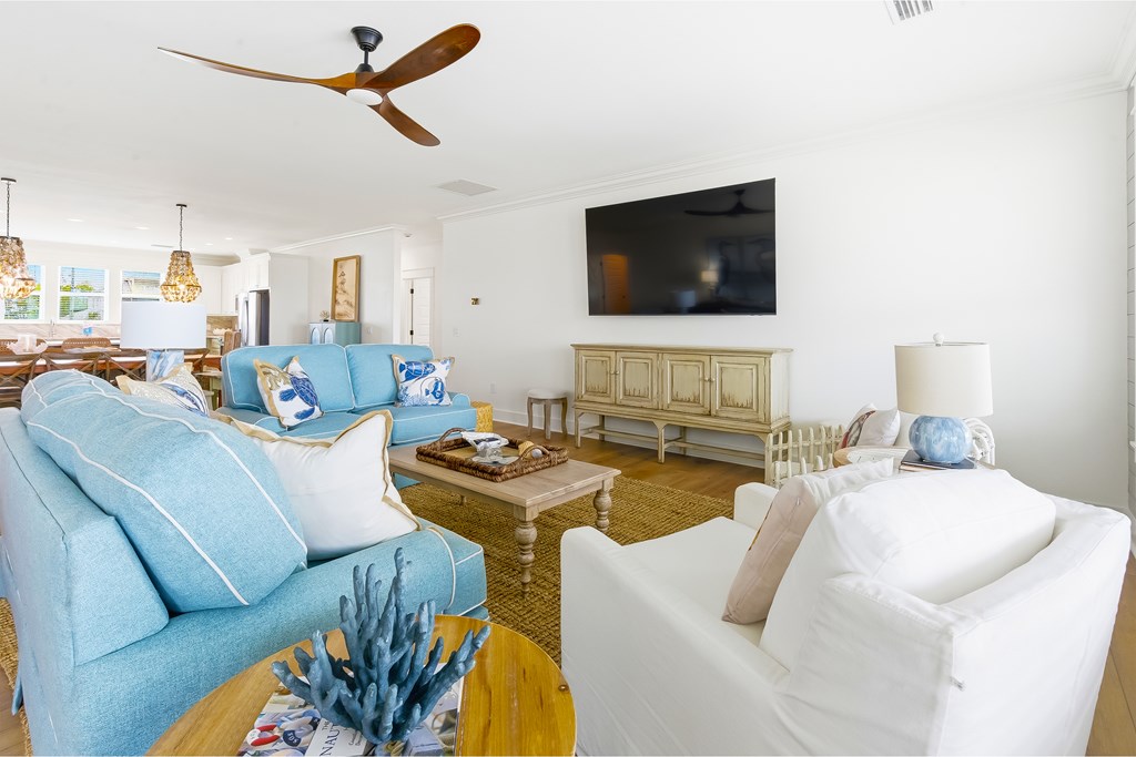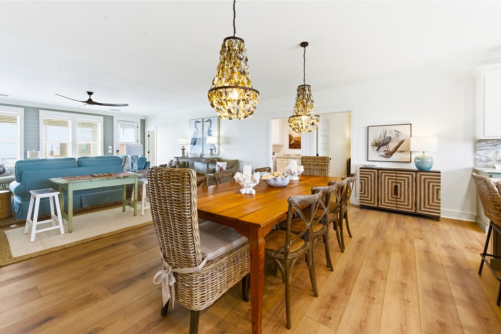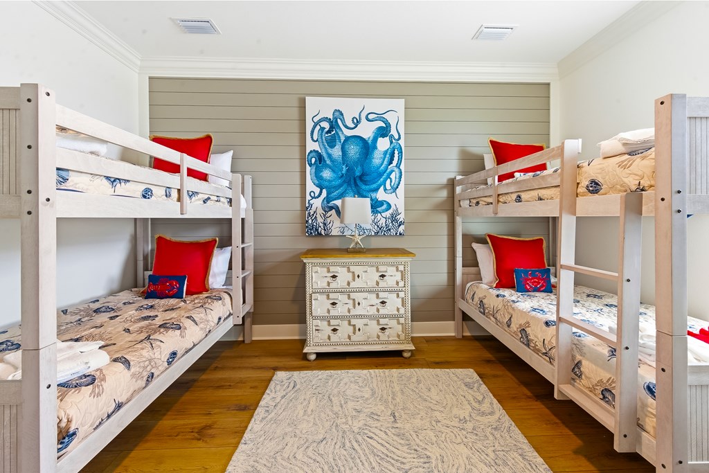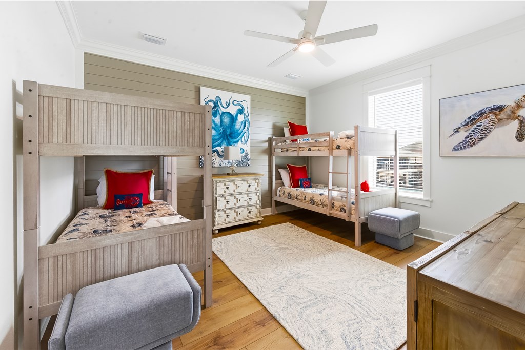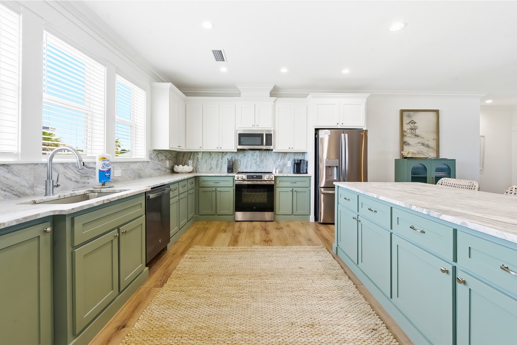 Beautiful new construction beach house in the desirable Gulf Beaches area, perfectly positioned just across the street from the beach. This 4-bedroom, 4-bath home offers stunning beach views from the expansive 640-square-foot furnished deck, designed for relaxing, entertaining, and enjoying the coastal breeze. Inside, the thoughtfully designed split floor plan features a spacious great room. The home features 9-foot interior ceilings, creating an open and airy feel throughout. The large kitchen offers abundant cabinet space, granite countertops, stainless steel appliances, and an open flow into the main living and dining areas. Luxury vinyl plank flooring, crown molding, shiplap accent walls, solid wood interior doors, and beautifully selected dcor create a warm yet refined coastal atmosphere. Three of the four bedrooms feature private ensuite bathrooms, offering comfort and privacy for guests and owners alike. Large windows throughout the home fill the interior with natural light, while the oversized laundry room provides excellent space for additional storage. Outdoor living is just as impressive with a professionally landscaped and maintained yard, custom wood deck railings, a wide exterior staircase, enclosed outdoor shower, and a stunning 26' x 13' Gunite pool complete with a sun shelf. The brick pool deck and patio area create the perfect oasis for sunbathing and entertaining. Additional features include an elevator for convenience and a garage/storage area under the home, ideal for your golf cart and beach gear. Located in the golf cart-friendly Gulf Beaches community, this home is close to the bike path and just over a mile from groceries, gas, shops, and restaurants—offering the perfect blend of luxury, comfort, and island convenience. Construction was completed early 2026 and new to the vacation rental market.