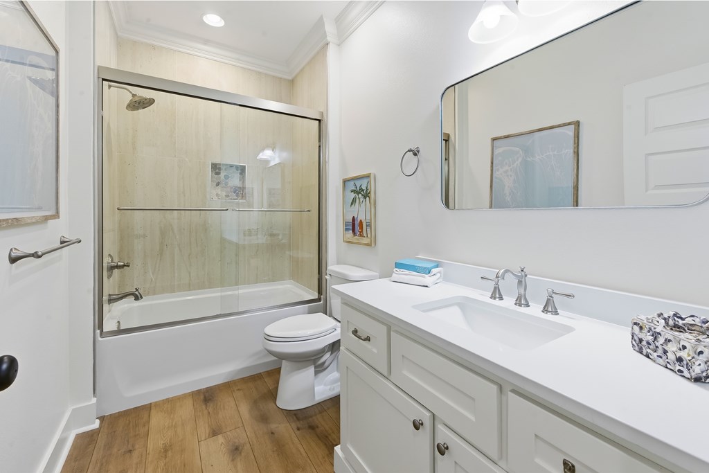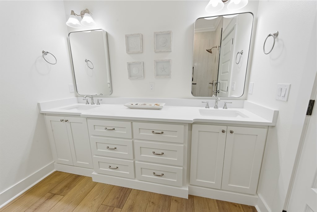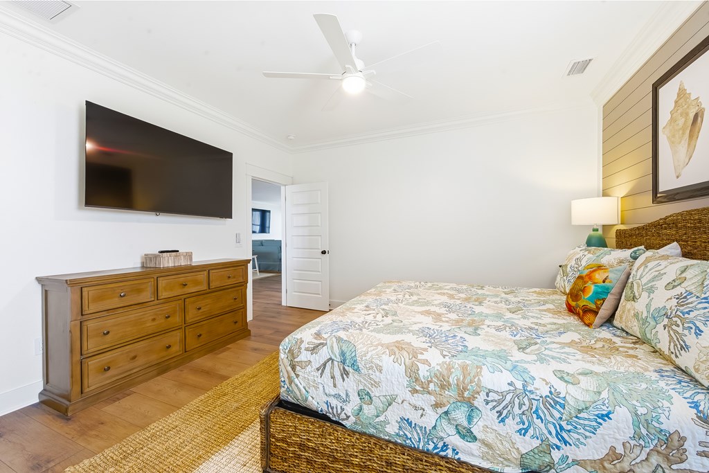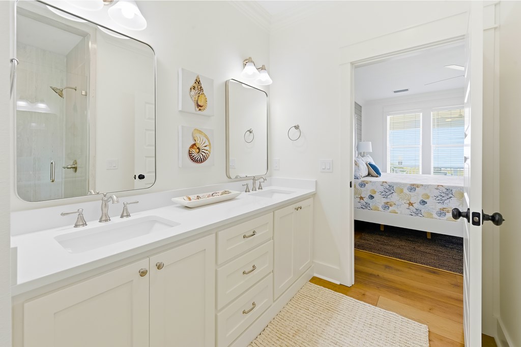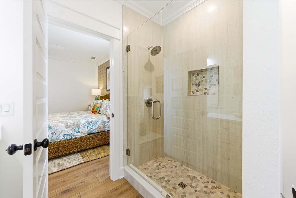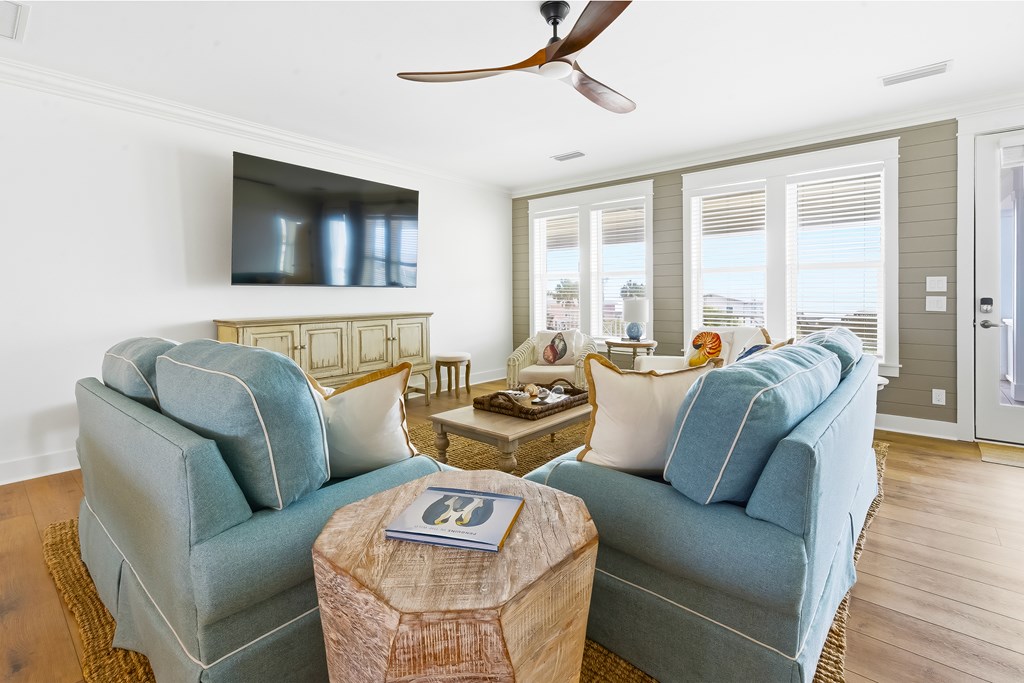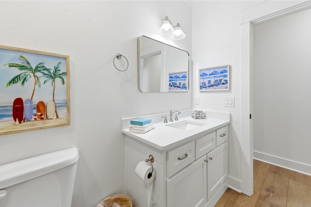 Beautiful new construction beach house in the desirable Gulf Beaches area, perfectly positioned just across the street from the beach. This 4-bedroom, 4-bath home offers stunning beach views from the expansive 640-square-foot furnished deck, designed for relaxing, entertaining, and enjoying the coastal breeze. Inside, the thoughtfully designed split floor plan features a spacious great room. The home features 9-foot interior ceilings, creating an open and airy feel throughout. The large kitchen offers abundant cabinet space, granite countertops, stainless steel appliances, and an open flow into the main living and dining areas. Luxury vinyl plank flooring, crown molding, shiplap accent walls, solid wood interior doors, and beautifully selected dcor create a warm yet refined coastal atmosphere. Three of the four bedrooms feature private ensuite bathrooms, offering comfort and privacy for guests and owners alike. Large windows throughout the home fill the interior with natural light, while the oversized laundry room provides excellent space for additional storage. Outdoor living is just as impressive with a professionally landscaped and maintained yard, custom wood deck railings, a wide exterior staircase, enclosed outdoor shower, and a stunning 26' x 13' Gunite pool complete with a sun shelf. The brick pool deck and patio area create the perfect oasis for sunbathing and entertaining. Additional features include an elevator for convenience and a garage/storage area under the home, ideal for your golf cart and beach gear. Located in the golf cart-friendly Gulf Beaches community, this home is close to the bike path and just over a mile from groceries, gas, shops, and restaurants—offering the perfect blend of luxury, comfort, and island convenience. Construction was completed early 2026 and new to the vacation rental market.