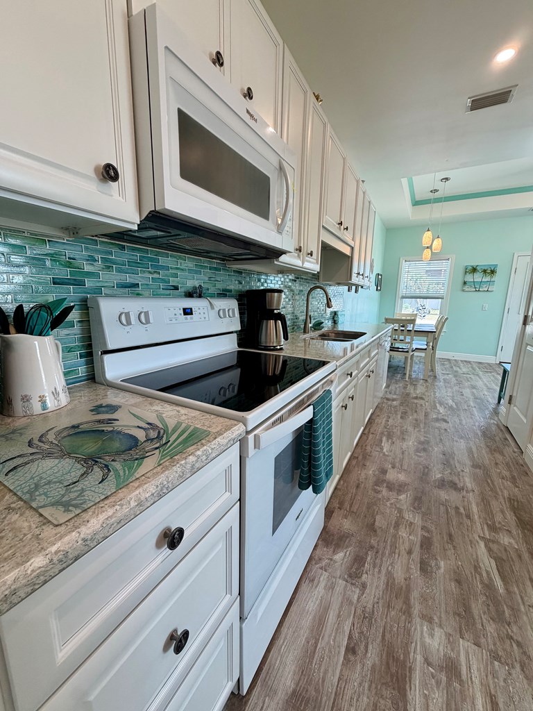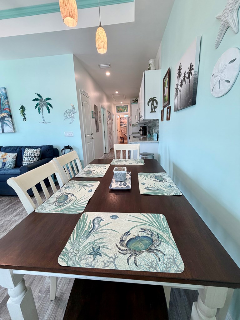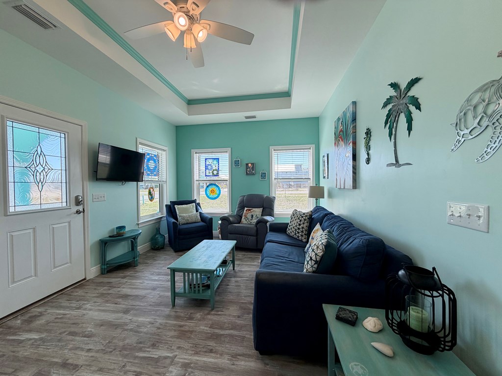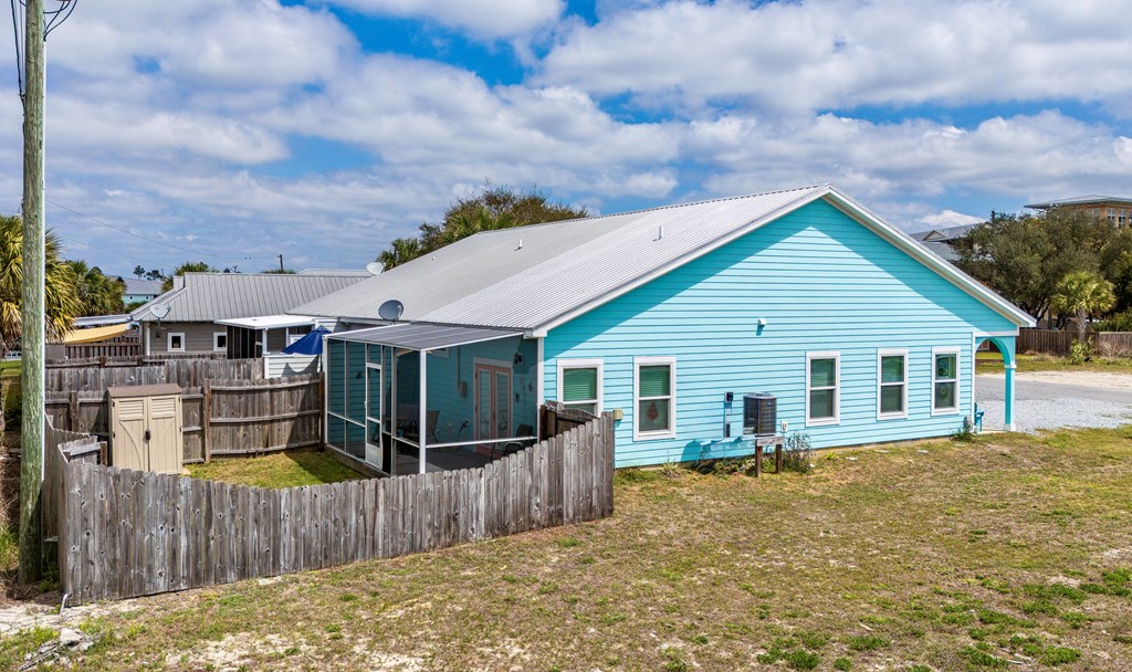 Coastal charm meets easy living at Teal Breeze, a beautifully appointed 2-bedroom, 2-bath home just a short stroll—about a block—from the white sands of Mexico Beach. Located in the desirable X-flood zone with no HOA fees, this low-maintenance, turn-key property is being sold fully furnished making it an ideal short-term rental investment, second home, or full-time residence. Inside, the open floor plan is filled with natural light and enhanced by tray ceilings, creating an airy, inviting atmosphere. The stylish galley kitchen features quartz countertops with matching backsplash, while coastal dcor and beautifully crafted stained glass accents add character throughout. The spacious primary suite offers a designer tiled shower and French doors that open to a relaxing screened back porch perfect for enjoying the coastal breeze. A full-sized washer and dryer and an on-demand hot water heater add everyday convenience and efficiency. With a welcoming front porch, nearby boat access, and close proximity to shopping, dining, and city beach facilities, Teal Breeze is a true gem for embracing the laid-back beach lifestyle.