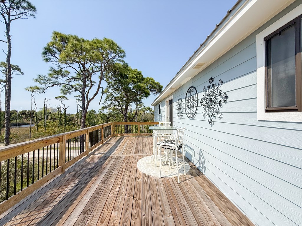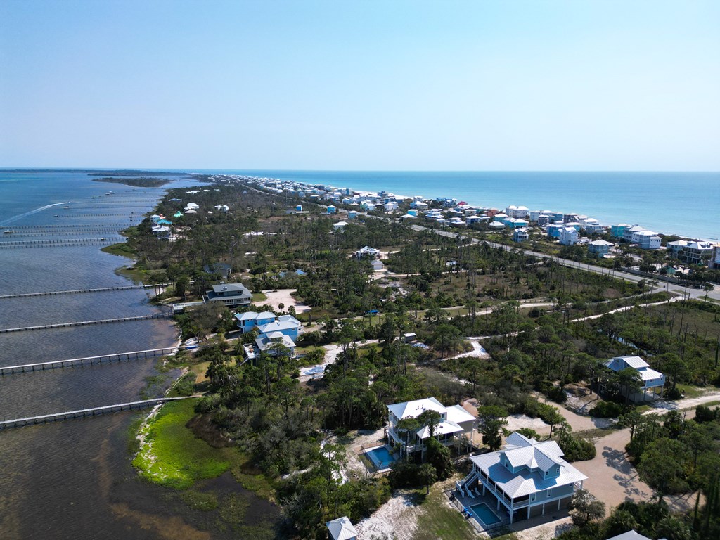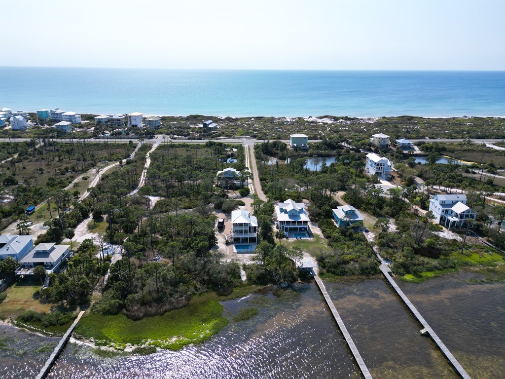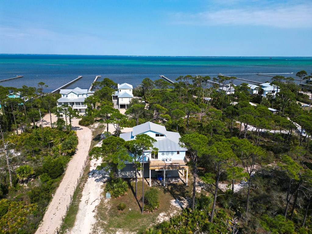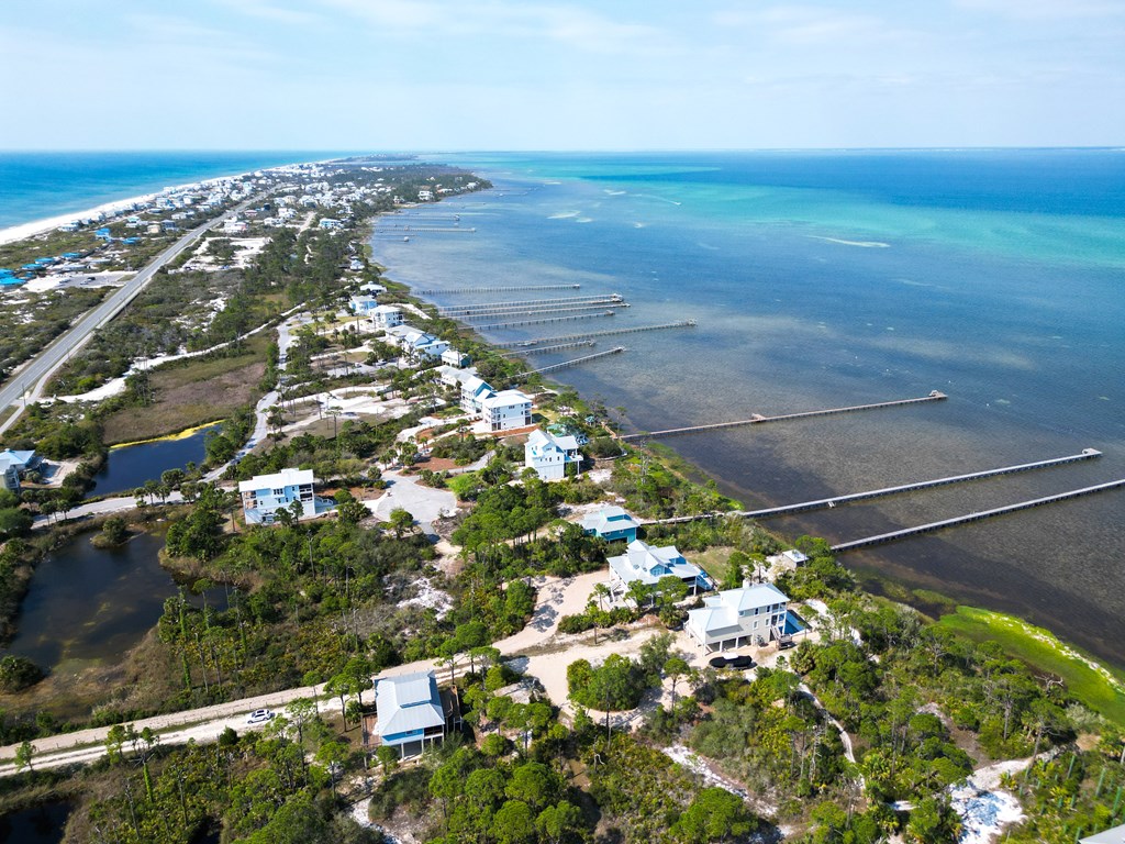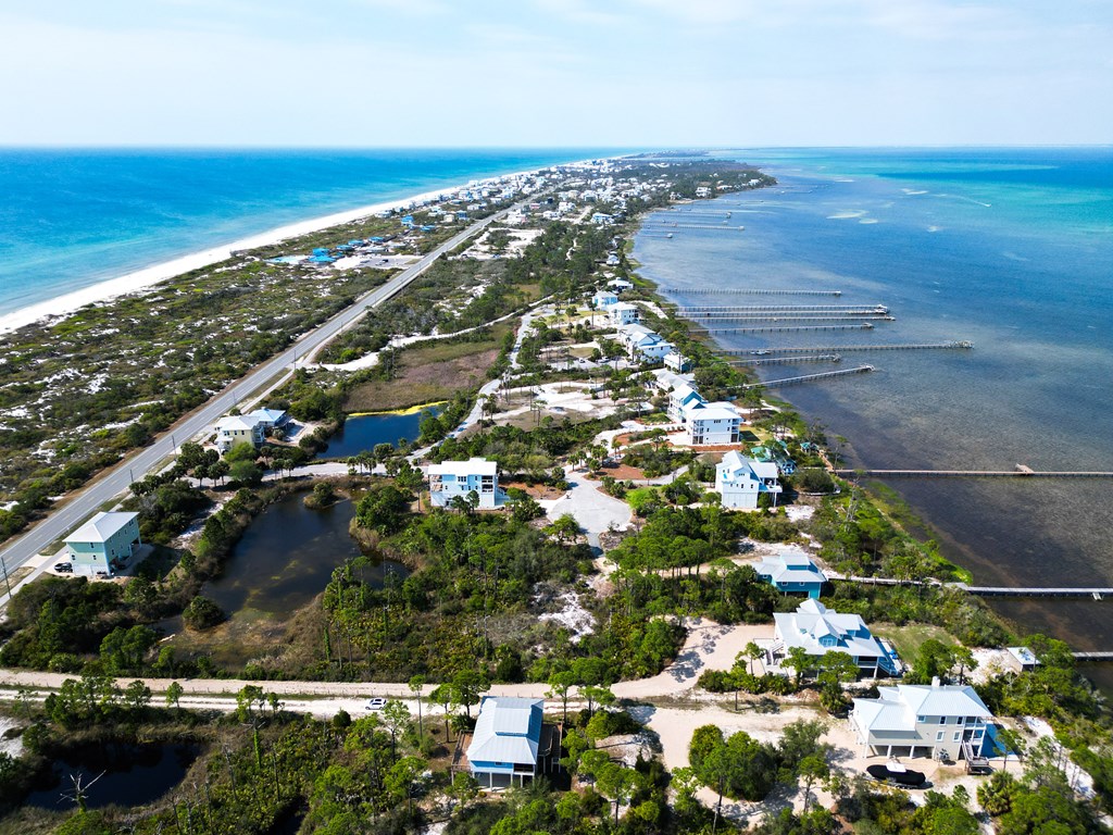 Coastal Comfort Meets Scenic Bayside Living; Welcome to your slice of paradise on St. Joseph Bay, perfectly situated in the sought-after Cape San Blas area. This charming first-tier, single-level home offers 2 bedrooms and 2 bathrooms, blending relaxed coastal style with modern comforts, all just steps from the water's edge. Designed for easy living, the open floor plan brings together the living, dining, and kitchen spaces in a bright, airy setting filled with natural light and picturesque water views. The kitchen is both stylish and functional, featuring granite countertops, custom cabinetry, a deep stainless steel sink, and high-end appliances, ideal for everything from casual breakfasts to evening gatherings. The spacious primary suite provides a peaceful retreat with a king bed, dual vanities, and a walk-in shower. The second bedroom is equally inviting, offering flexible sleeping arrangements and direct access to the outdoor deck. Both bedrooms feature sliding glass doors that open to expansive outdoor living spaces, enhancing the connection to the coastal surroundings. Step outside and unwind on the screened porch or stretch out on the large deck, perfect for dining al fresco, enjoying the sea breeze, or watching the colors of the sunset fade over the horizon. Multiple outdoor access points, including a Gulf-facing deck off the dining area, give you plenty of options to take in the views. A dedicated and shared dock adds to the appeal, making it easy to enjoy boating, fishing, or simply soaking in the beauty of St. Joseph Bay. This home has great beach access options and is located equidistant about 2000 feet from Cape Palms Park (Gulf County) or William J Rish State Park. Whether you're looking for a private coastal escape or a property with strong rental potential, this Cape San Blas retreat offers the best of both worlds. Added Value Opportunity: An additional vested and approved roadside lot is available for purchase, (see MLS listing 327881)