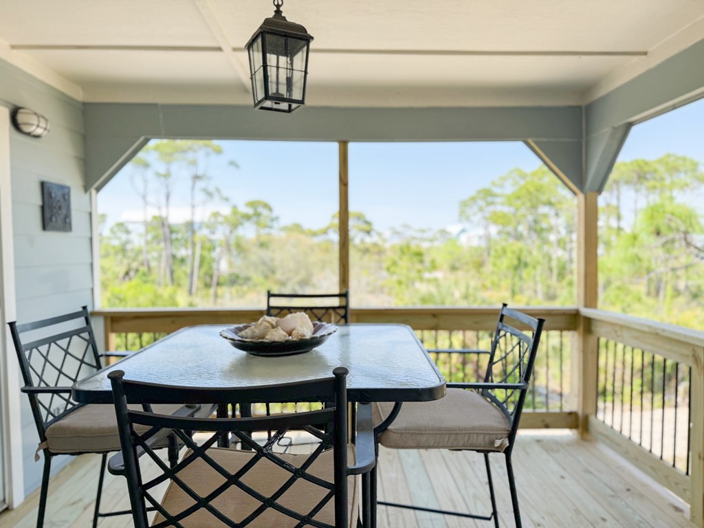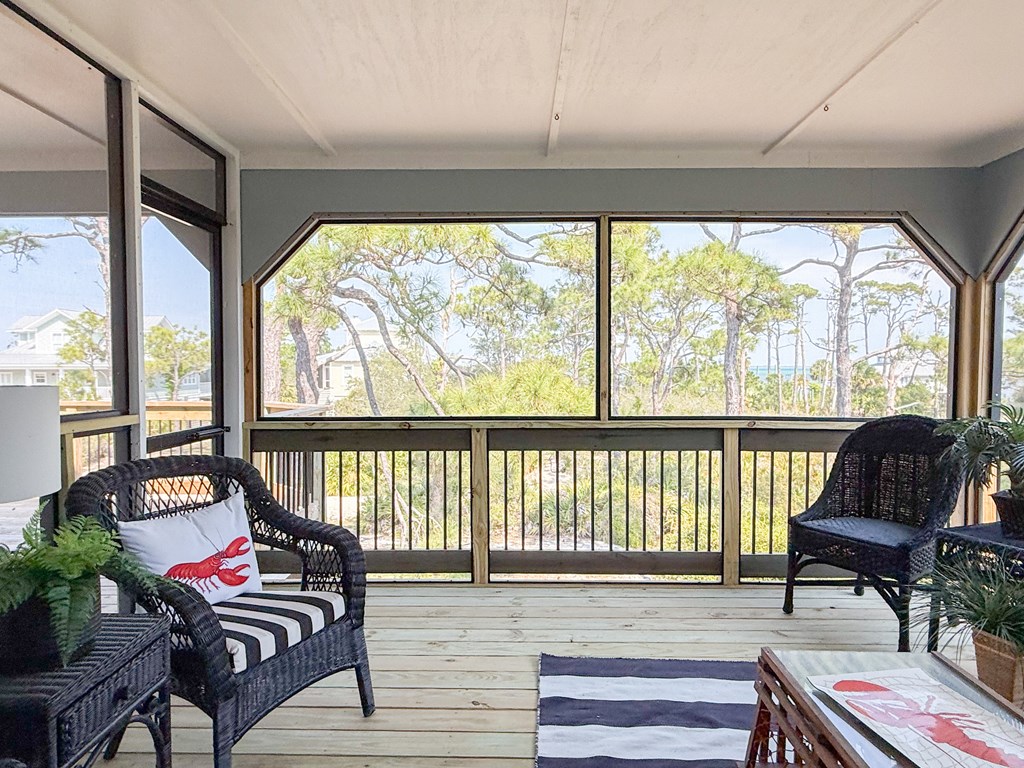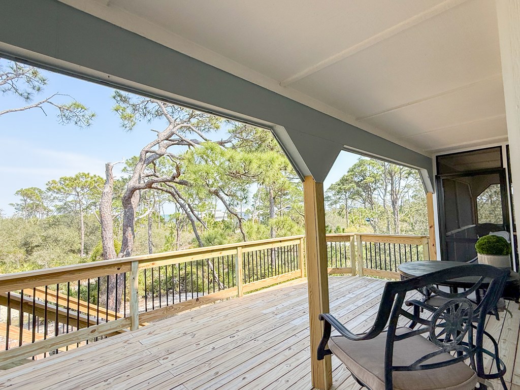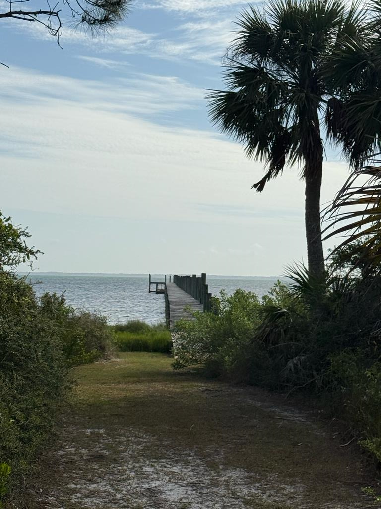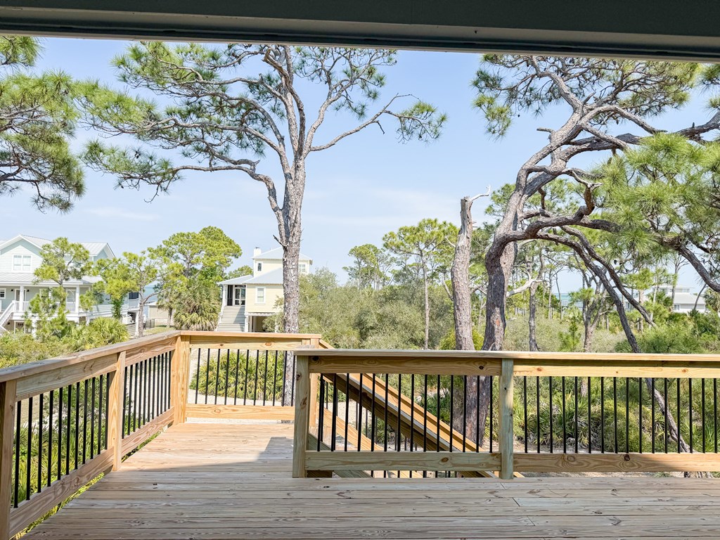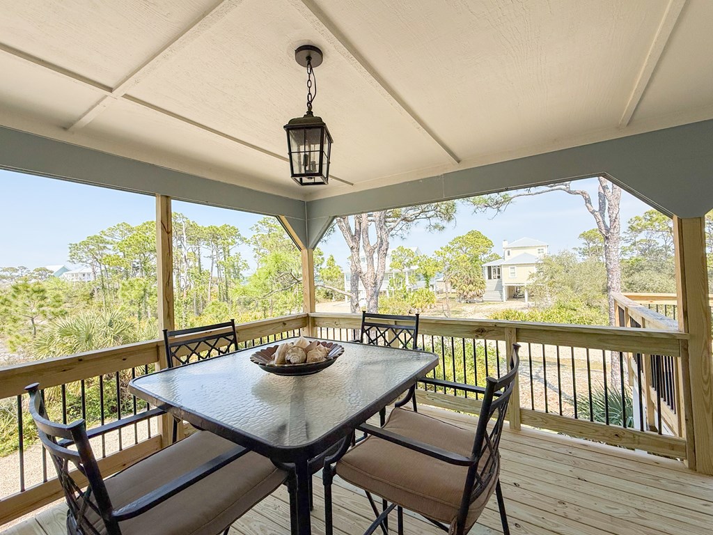 Coastal Comfort Meets Scenic Bayside Living; Welcome to your slice of paradise on St. Joseph Bay, perfectly situated in the sought-after Cape San Blas area. This charming first-tier, single-level home offers 2 bedrooms and 2 bathrooms, blending relaxed coastal style with modern comforts, all just steps from the water's edge. Designed for easy living, the open floor plan brings together the living, dining, and kitchen spaces in a bright, airy setting filled with natural light and picturesque water views. The kitchen is both stylish and functional, featuring granite countertops, custom cabinetry, a deep stainless steel sink, and high-end appliances, ideal for everything from casual breakfasts to evening gatherings. The spacious primary suite provides a peaceful retreat with a king bed, dual vanities, and a walk-in shower. The second bedroom is equally inviting, offering flexible sleeping arrangements and direct access to the outdoor deck. Both bedrooms feature sliding glass doors that open to expansive outdoor living spaces, enhancing the connection to the coastal surroundings. Step outside and unwind on the screened porch or stretch out on the large deck, perfect for dining al fresco, enjoying the sea breeze, or watching the colors of the sunset fade over the horizon. Multiple outdoor access points, including a Gulf-facing deck off the dining area, give you plenty of options to take in the views. A dedicated and shared dock adds to the appeal, making it easy to enjoy boating, fishing, or simply soaking in the beauty of St. Joseph Bay. This home has great beach access options and is located equidistant about 2000 feet from Cape Palms Park (Gulf County) or William J Rish State Park. Whether you're looking for a private coastal escape or a property with strong rental potential, this Cape San Blas retreat offers the best of both worlds. Added Value Opportunity: An additional vested and approved roadside lot is available for purchase, (see MLS listing 327881)