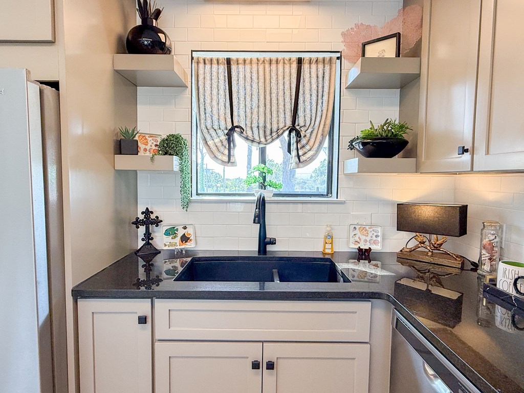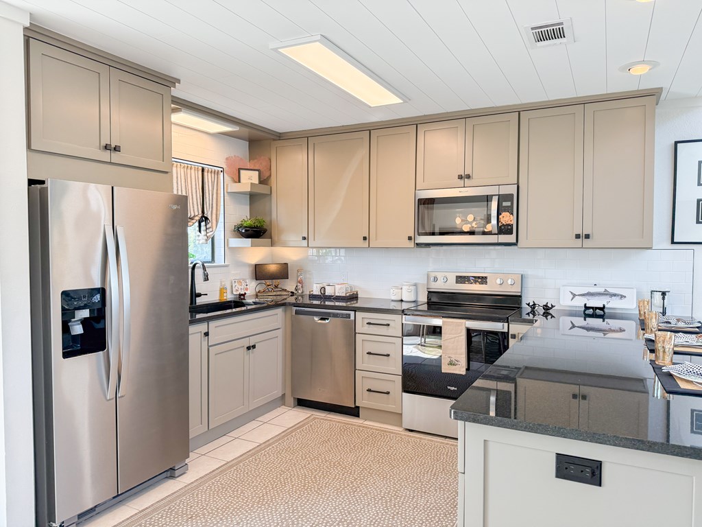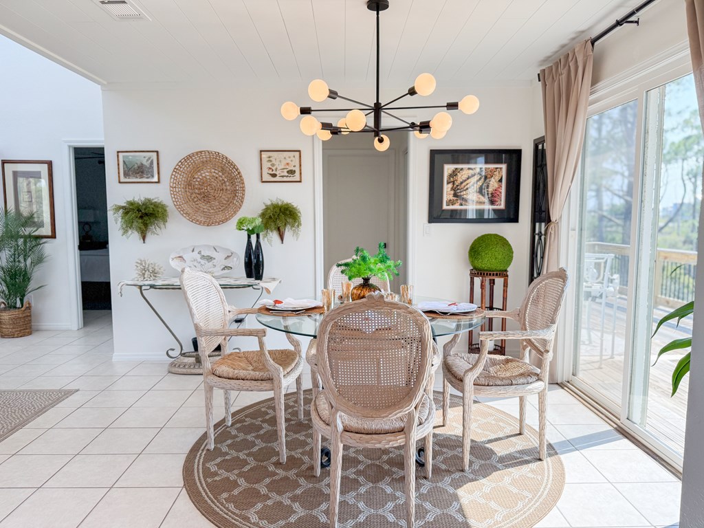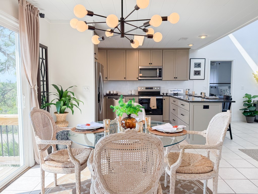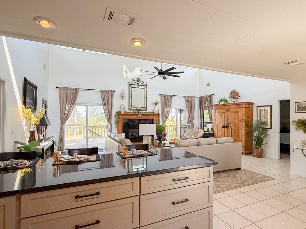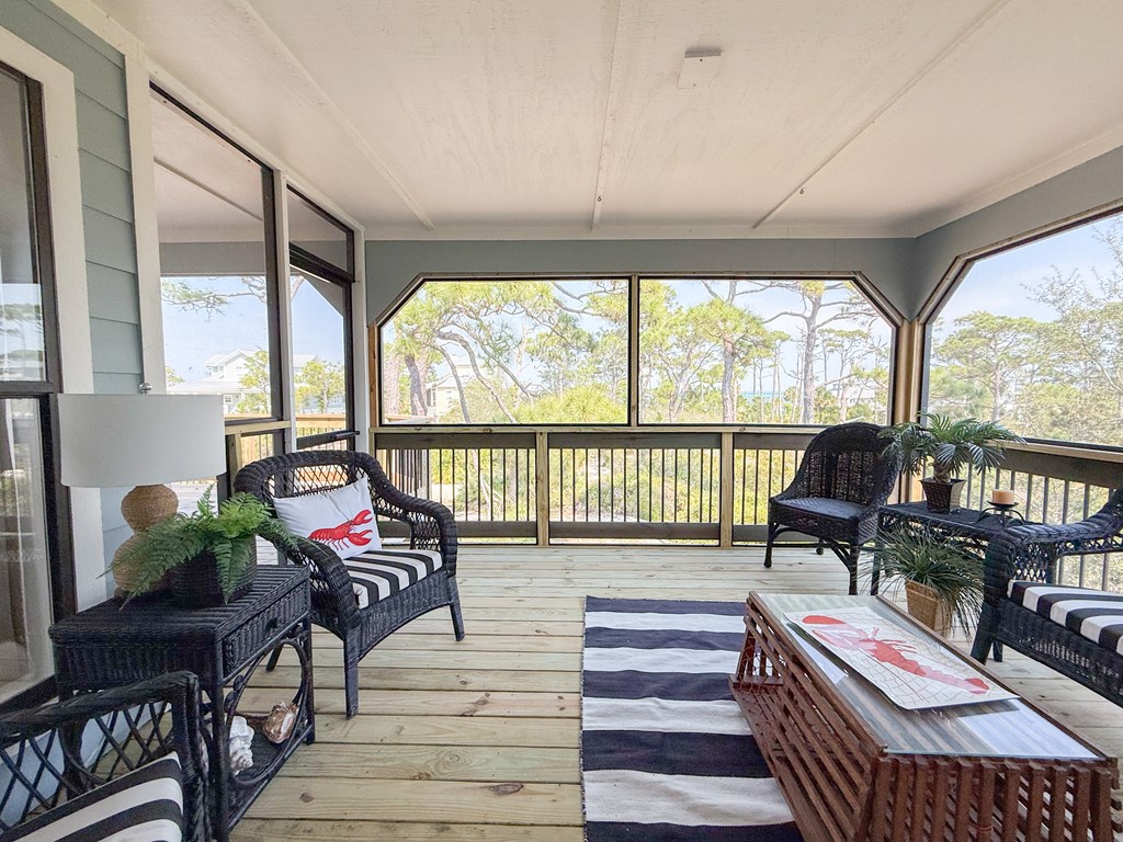 Coastal Comfort Meets Scenic Bayside Living; Welcome to your slice of paradise on St. Joseph Bay, perfectly situated in the sought-after Cape San Blas area. This charming first-tier, single-level home offers 2 bedrooms and 2 bathrooms, blending relaxed coastal style with modern comforts, all just steps from the water's edge. Designed for easy living, the open floor plan brings together the living, dining, and kitchen spaces in a bright, airy setting filled with natural light and picturesque water views. The kitchen is both stylish and functional, featuring granite countertops, custom cabinetry, a deep stainless steel sink, and high-end appliances, ideal for everything from casual breakfasts to evening gatherings. The spacious primary suite provides a peaceful retreat with a king bed, dual vanities, and a walk-in shower. The second bedroom is equally inviting, offering flexible sleeping arrangements and direct access to the outdoor deck. Both bedrooms feature sliding glass doors that open to expansive outdoor living spaces, enhancing the connection to the coastal surroundings. Step outside and unwind on the screened porch or stretch out on the large deck, perfect for dining al fresco, enjoying the sea breeze, or watching the colors of the sunset fade over the horizon. Multiple outdoor access points, including a Gulf-facing deck off the dining area, give you plenty of options to take in the views. A dedicated and shared dock adds to the appeal, making it easy to enjoy boating, fishing, or simply soaking in the beauty of St. Joseph Bay. This home has great beach access options and is located equidistant about 2000 feet from Cape Palms Park (Gulf County) or William J Rish State Park. Whether you're looking for a private coastal escape or a property with strong rental potential, this Cape San Blas retreat offers the best of both worlds. Added Value Opportunity: An additional vested and approved roadside lot is available for purchase, (see MLS listing 327881)