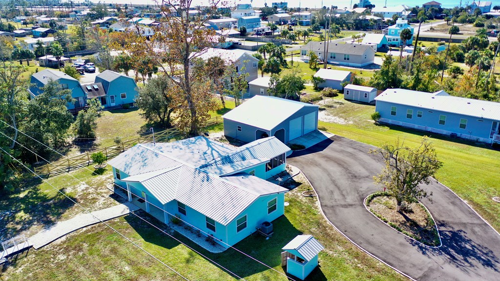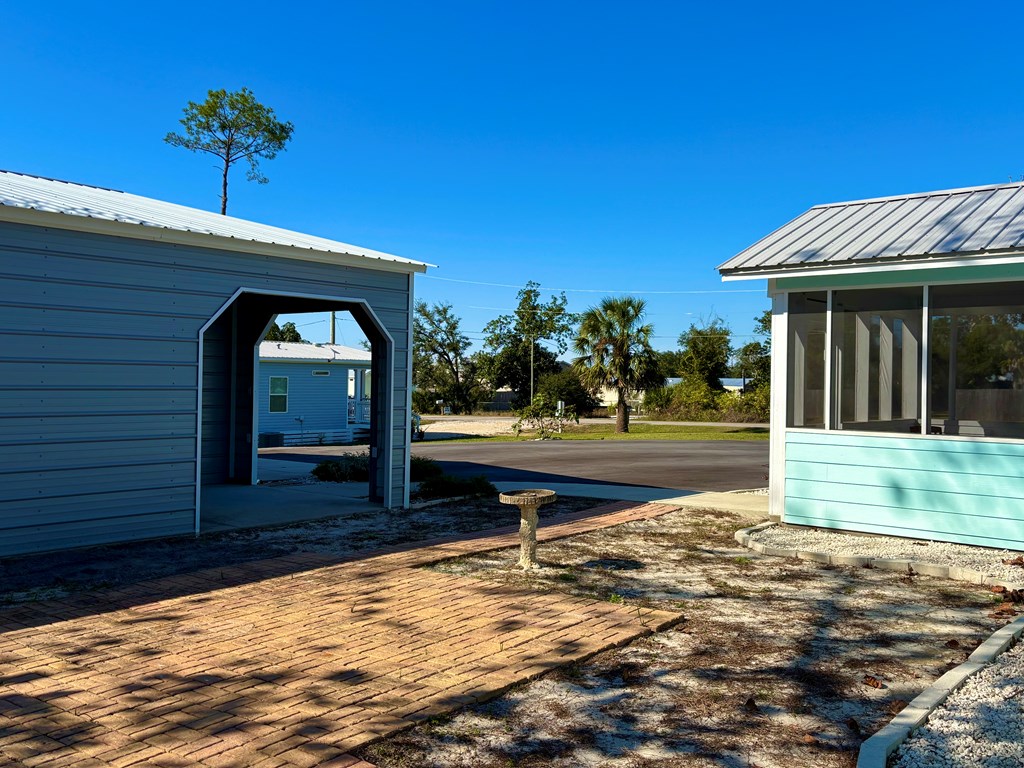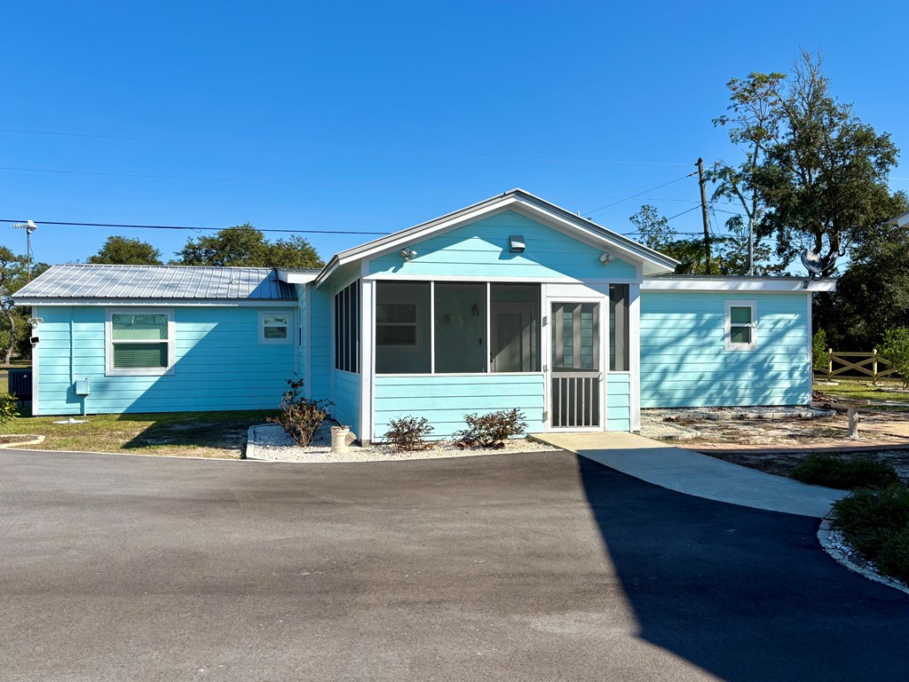 Charming Beach Cottage located on 2 lots! Just Steps from the the beautiful white sandy beaches. Feel the sea breezes from this beautifully renovated 3-bedroom, 2-bath beach cottage, located just 2 blocks from the Gulf. This home is the perfect blend of charm, modern updates, and coastal living! As you approach the home, a cute cobblestone path leads to the welcoming covered porch. Step inside to an open-concept living space featuring luxurious LVP flooring, creating an airy and spacious atmosphere perfect for entertaining or relaxing. The chef's kitchen has brand-new stainless steel appliances, custom cabinets and a island with pendant lighting and stunning granite top and a breakfast bar for casual dining. The primary bedroom is a true retreat with a luxurious en-suite bath. Enjoy the spa-like experience with a tiled walk-in shower featuring dual shower heads, a large soaking tub, and double vanities. The extra-large closet has a charming barn door entry. Two additional cozy bedrooms and a shared bath with a beautifully tiled shower complete the home's layout. Rinse off the sand from your day at the beach with your convenient outdoor shower. Unwind with a cool drink on the screened back porch, taking in the serene sunset views. The expansive detached garage offers ample space for cars, trucks, boat or beach toys. It is fully wired for electricity and rated for 180 mph winds. You will enjoy the paved circular driveway and a desirable double corner lot, this home provides convenience and space for all your needs. Located in an X Flood Zone, this property offers peace of mind and is just a short distance from shops, restaurants, and more. Whether you're seeking a perfect summer getaway or a relaxing retirement retreat, this beach cottage meets all 2021 hurricane requirements/all impact windows, tankless electric hot water heater & double airfry oven ready to welcome you home! Short-term rentals are allowed and there is no HOA. Call today to schedule your showing!