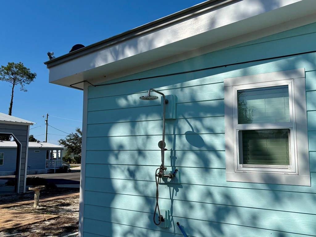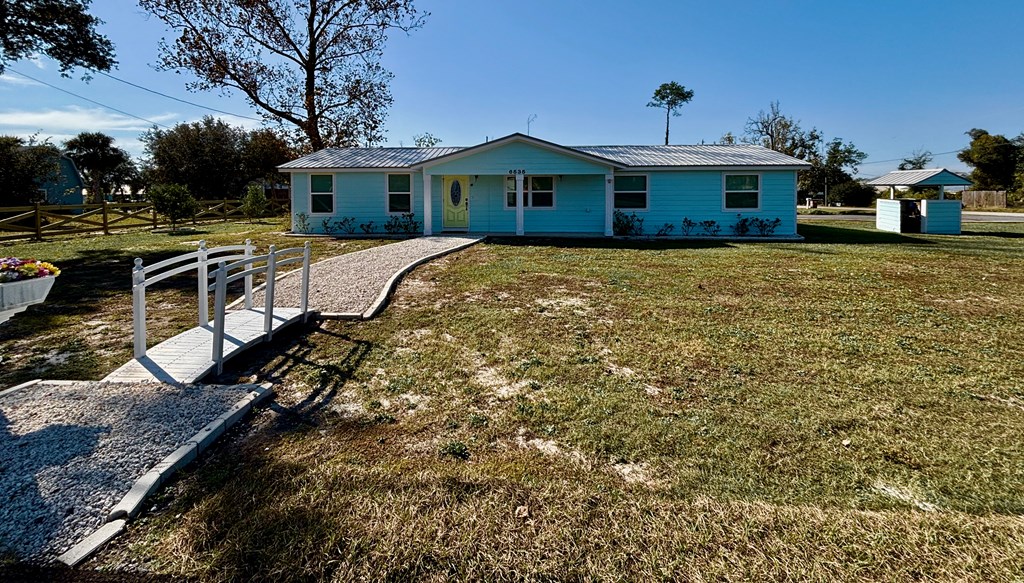 Take Hwy 98 to St Joe Beach, turn onto Atlantic Street then turn onto Alabama Avenue. House is on the corner.